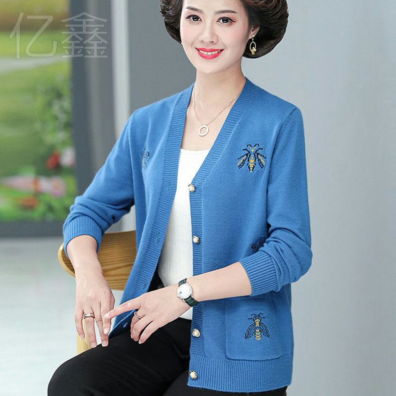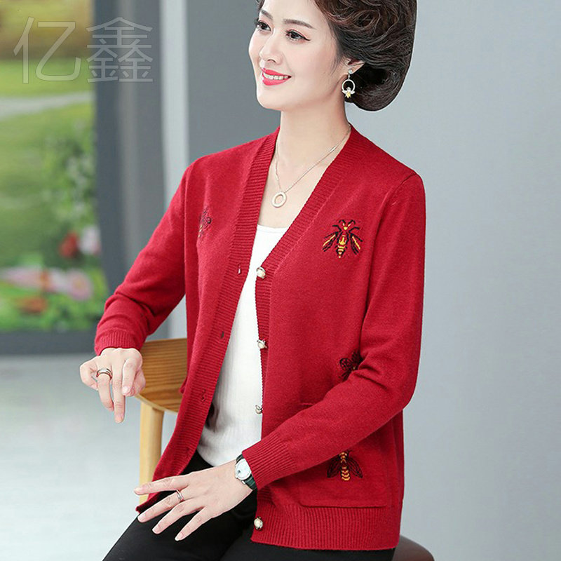 中年时尚妈妈秋装上衣外套2025新款中老年人女装春秋薄款针织开衫