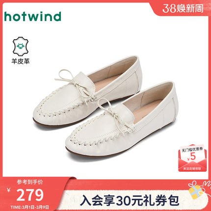 热风平底乐福鞋女2026年春季新款白色软底休闲鞋百搭轻便浅口单鞋