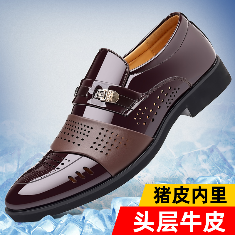 2023夏季男士凉皮鞋真皮打孔镂空洞洞内增高6CM透气漆皮爸爸凉鞋