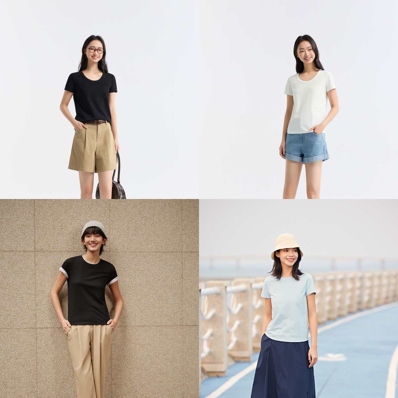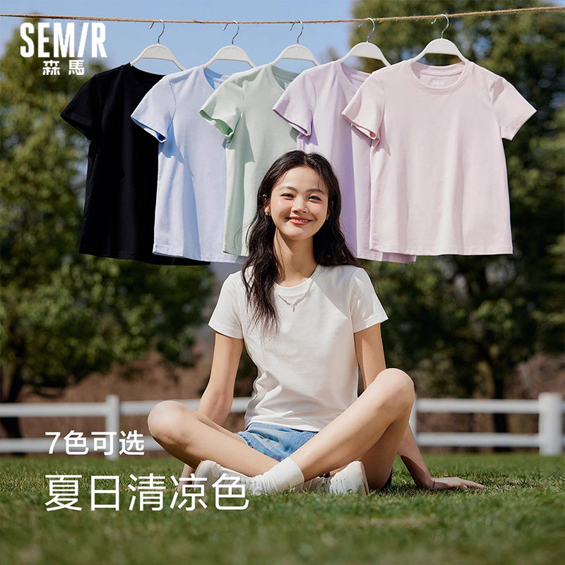 陈都灵同款凉感T森马短袖T恤女修身白色2025新款夏季爆款圆领半袖