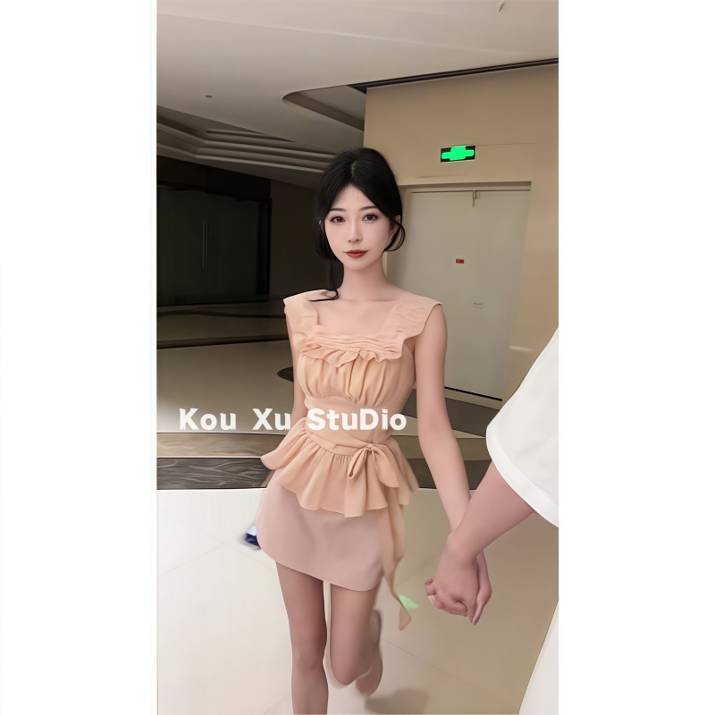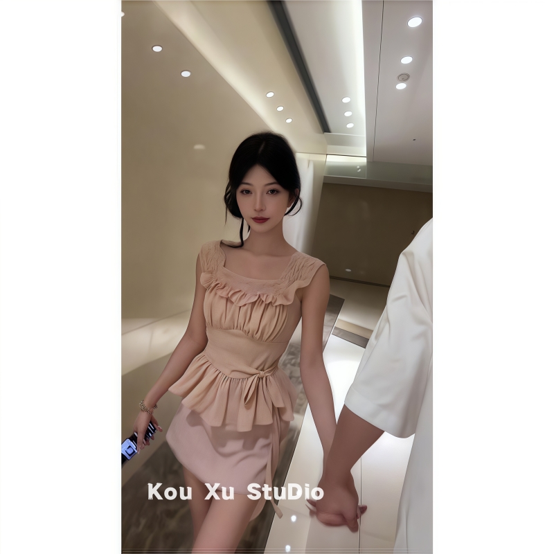 巨好看夏装一整套法式纯欲蕾丝无袖收腰上衣高腰显瘦半身裙包臀裙