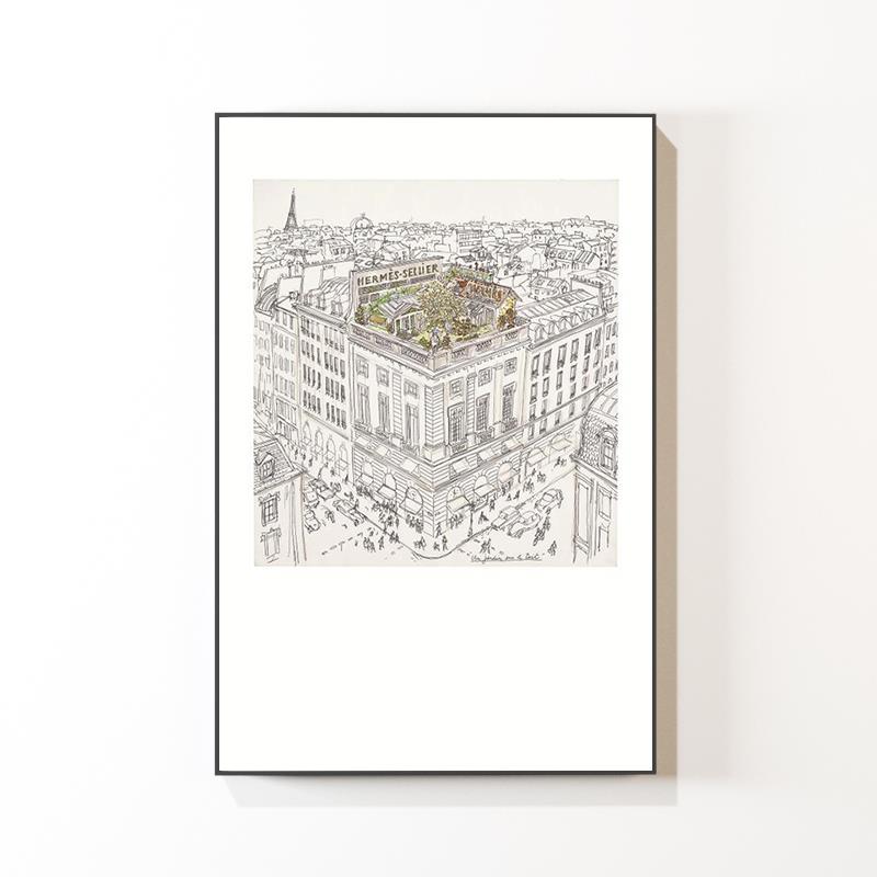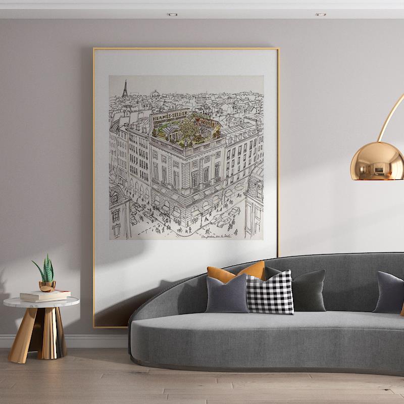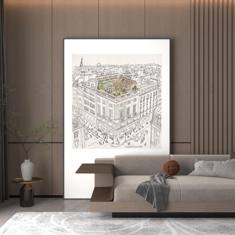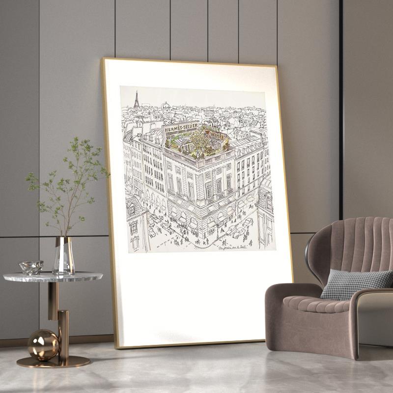 法式高级感沙发落地画现代简约客厅背景墙装饰画玄关大幅黑白挂画