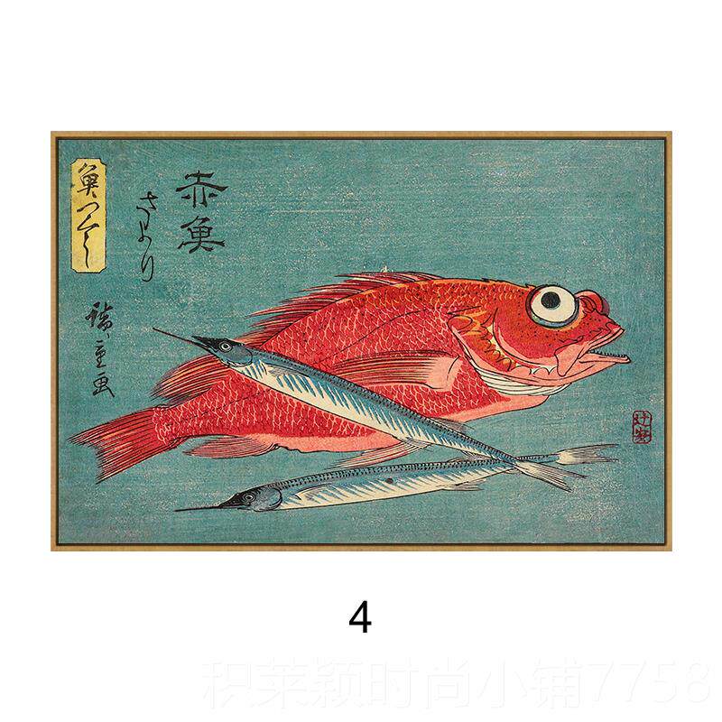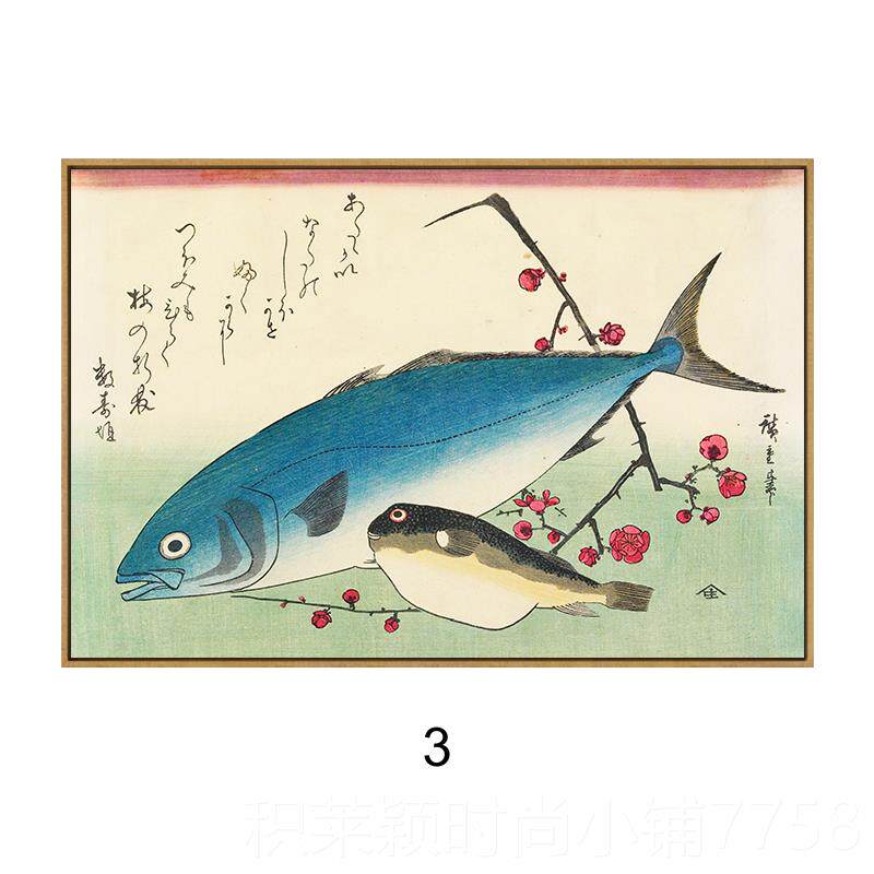 正品料民日式餐厅金枪鱼食物鱼虾类浮世绘装饰画宿酒店店日软装挂