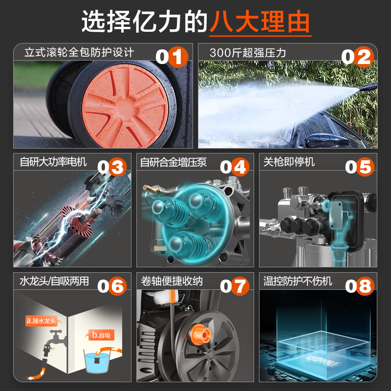 亿力高压洗车机家用220v水枪便携式洗车刷车水泵抢全自动清洗机