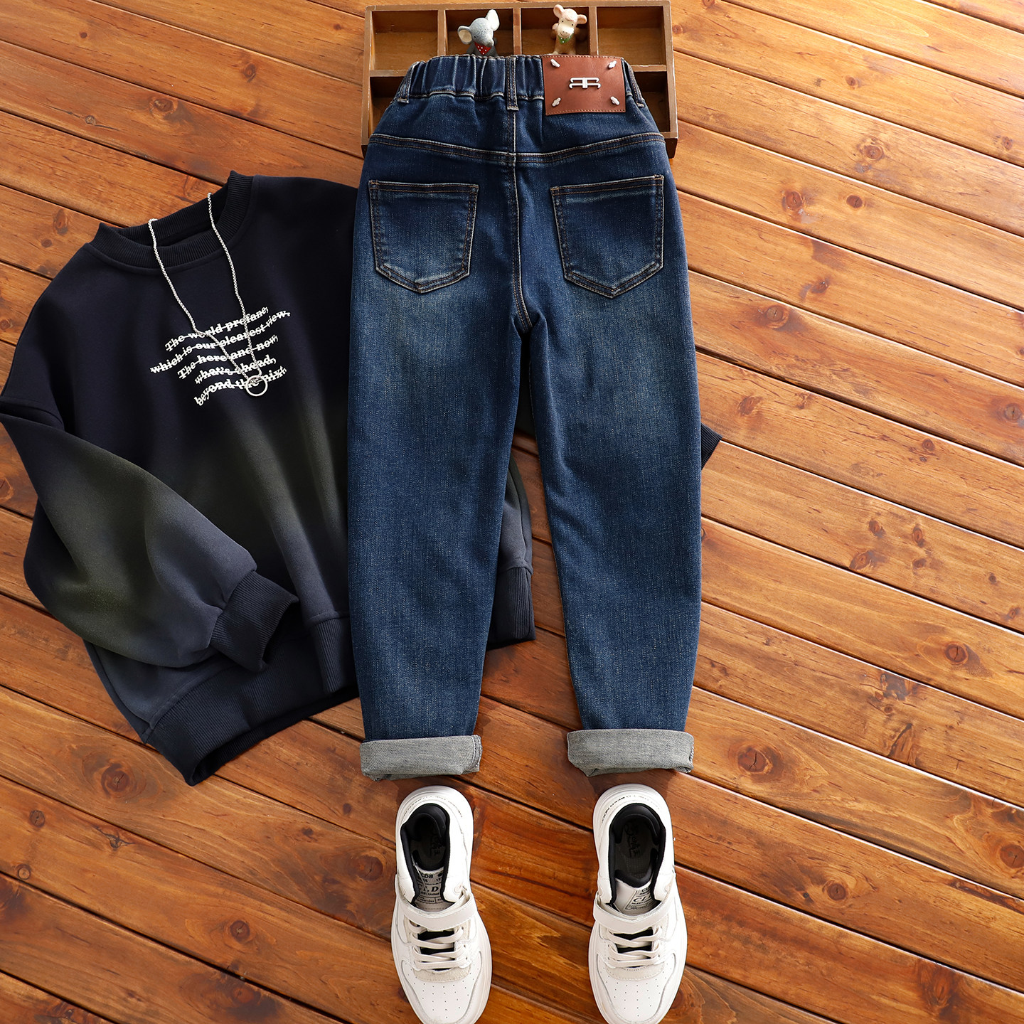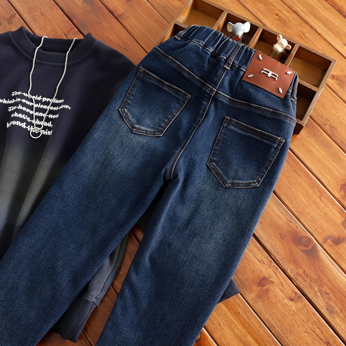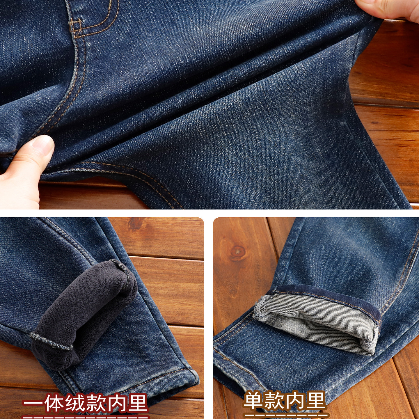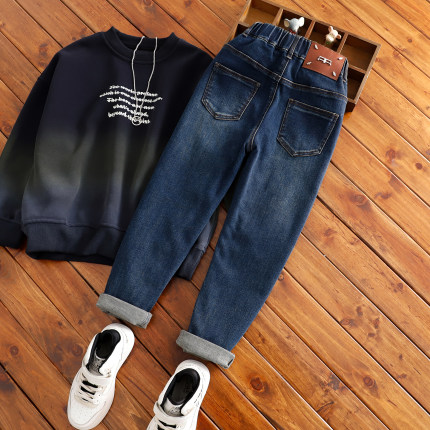 中大童瘦版牛仔裤冬男童加绒长裤