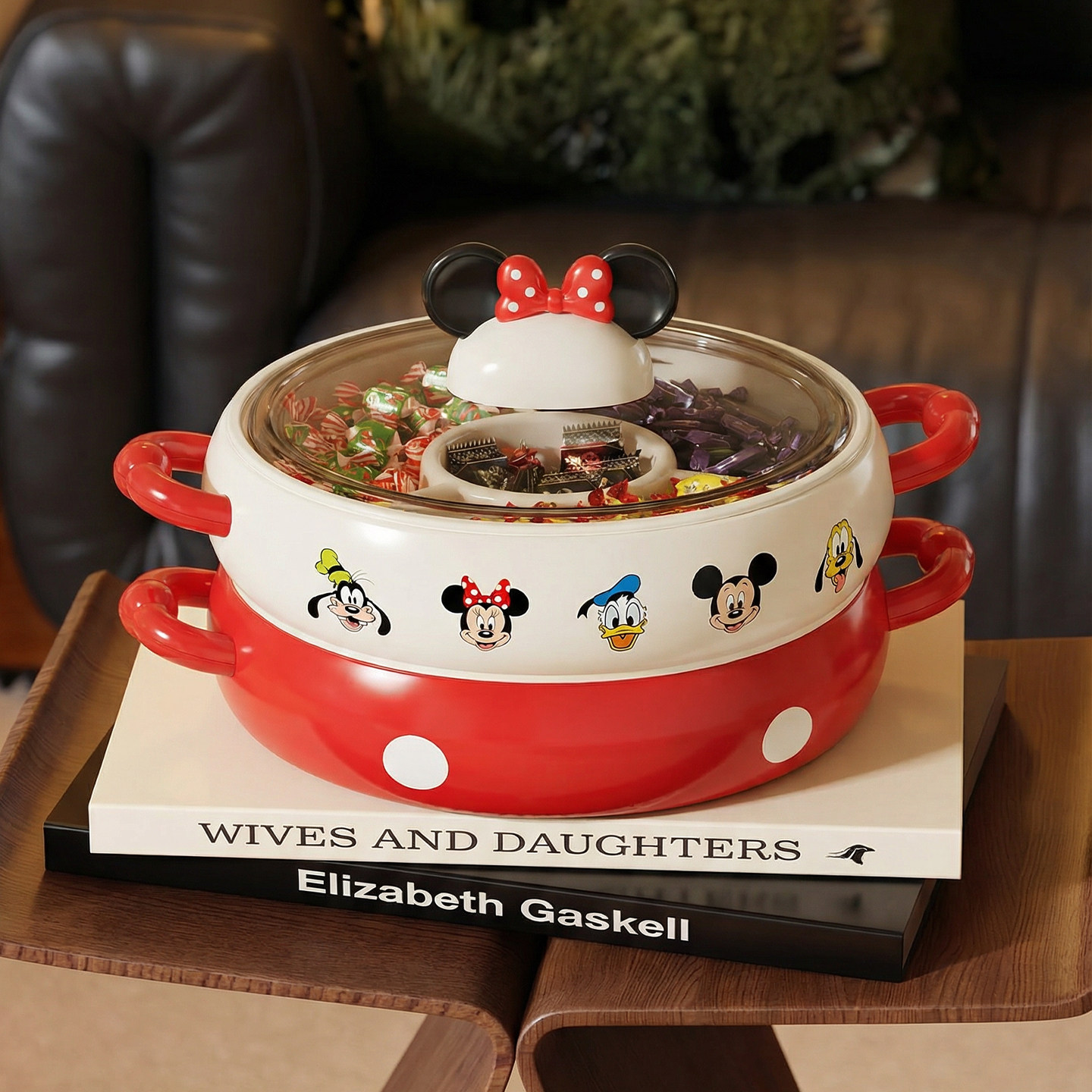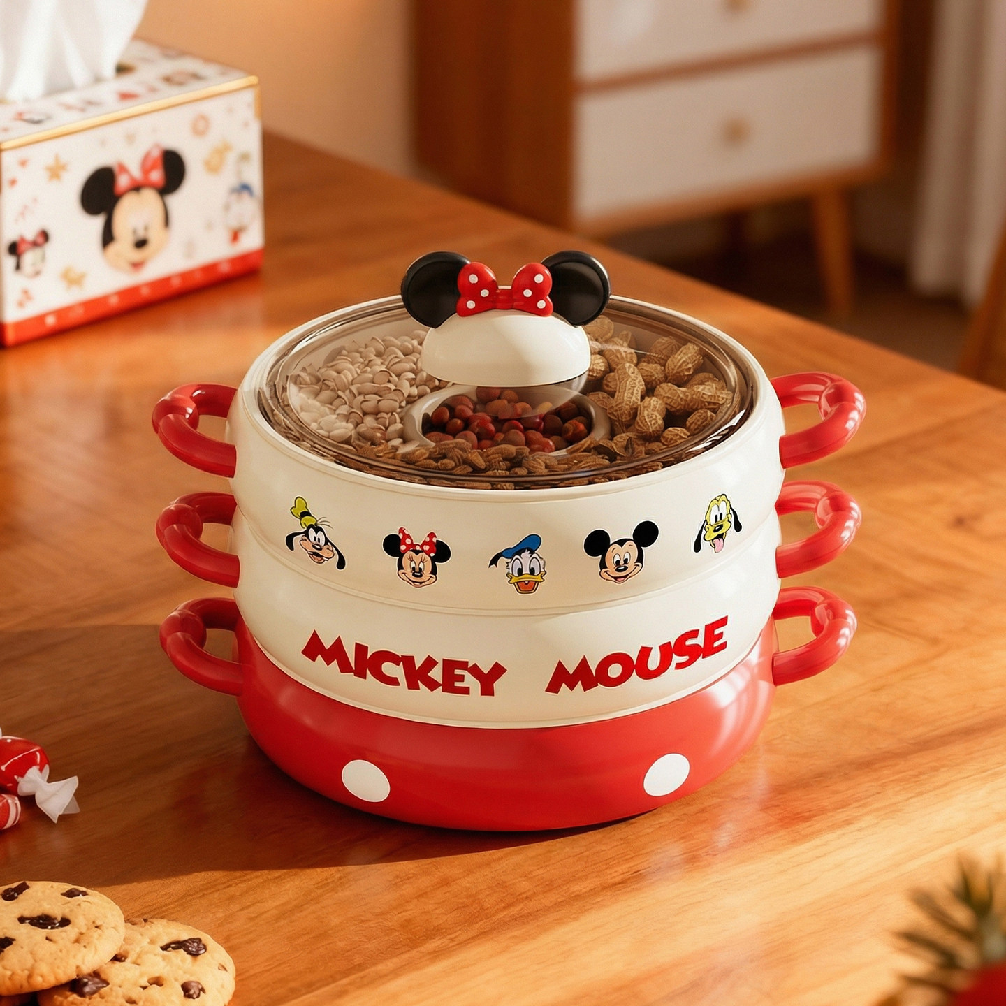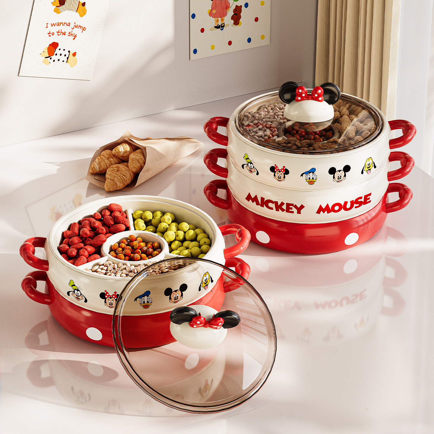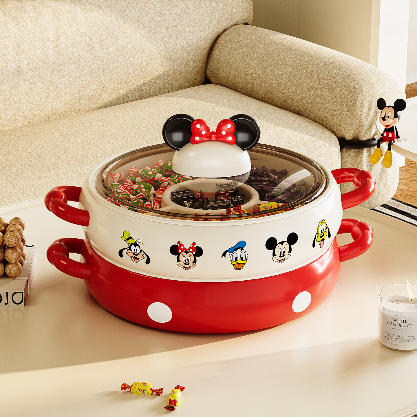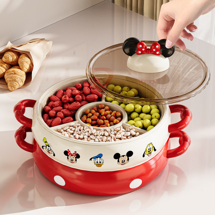 迪士尼干果盘坚果瓜子四宫格分格密封客厅家用高端零食新年糖果盒