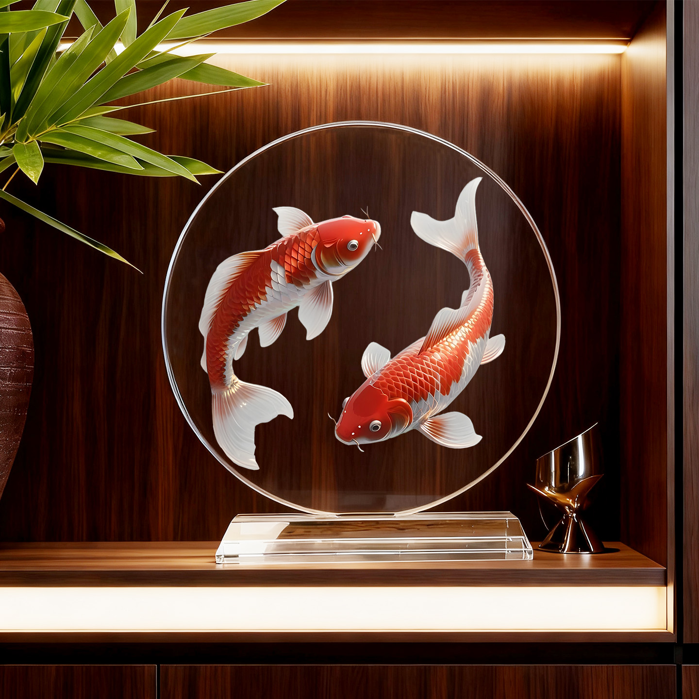 双锦鲤内雕水晶摆件连年有余家居装饰桌面好寓意客厅乔迁送礼摆台