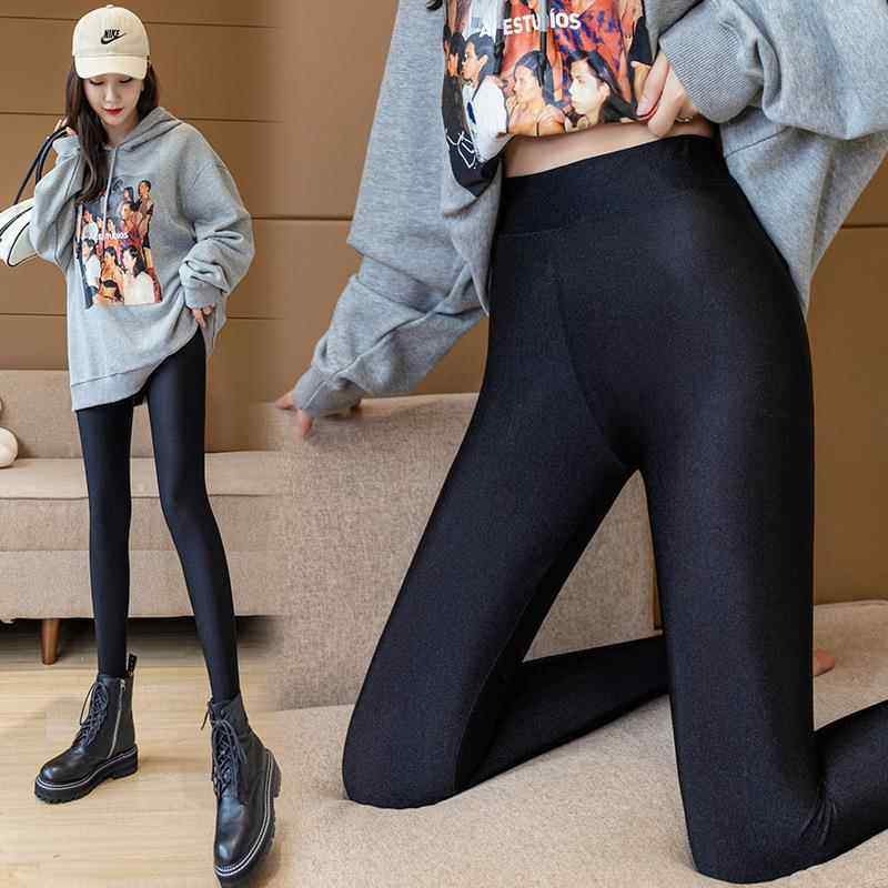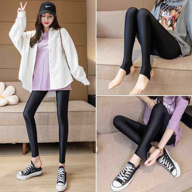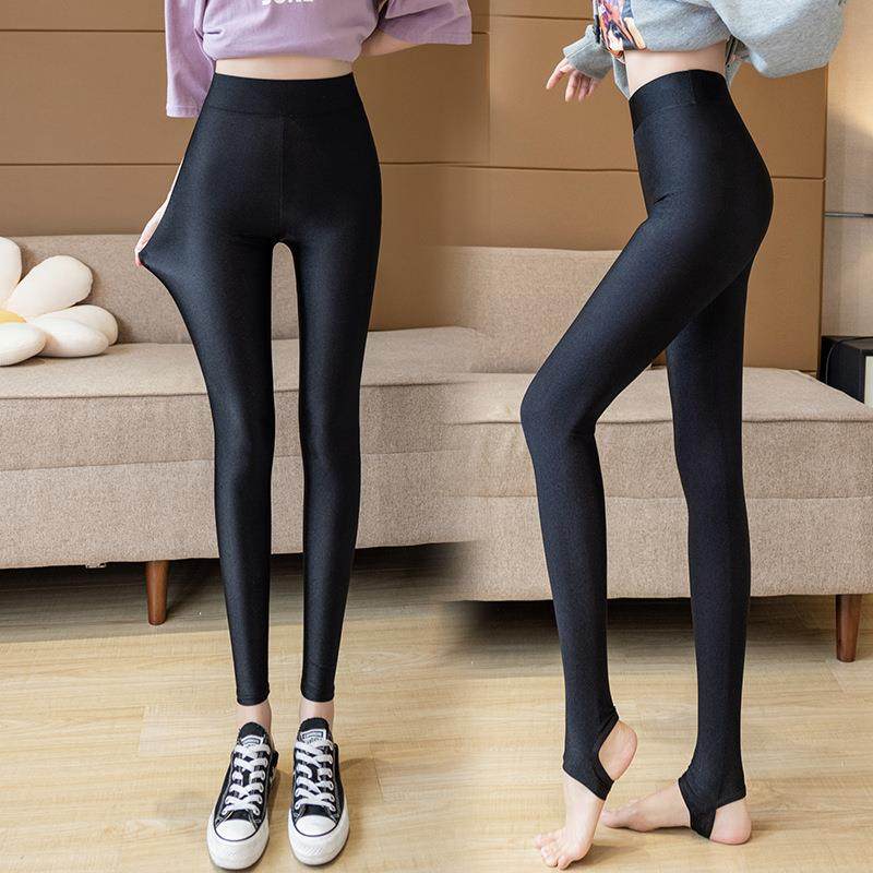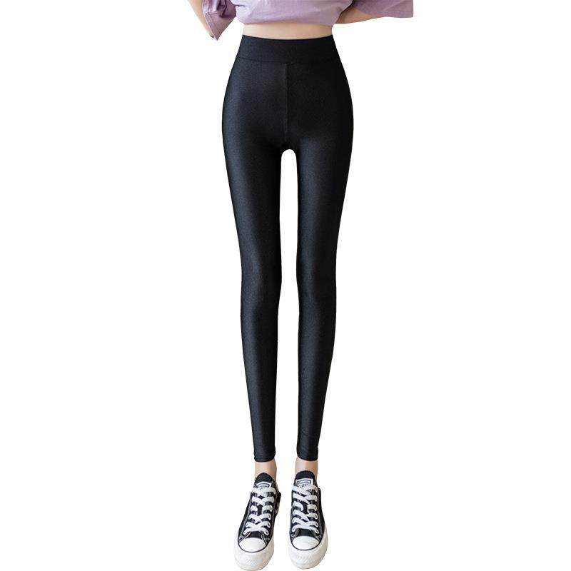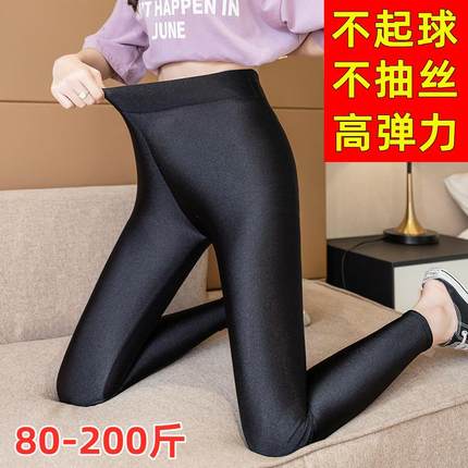 薄款打底裤女外穿大码胖mm弹力紧身裤子高腰光泽裤显瘦黑色小脚裤