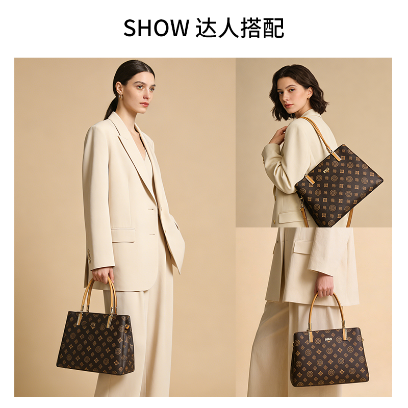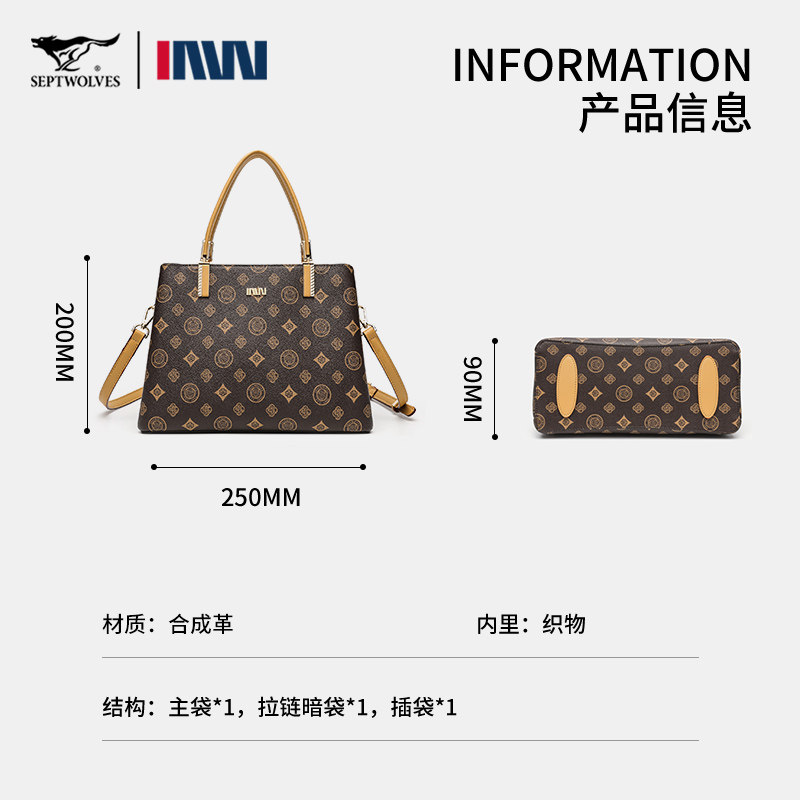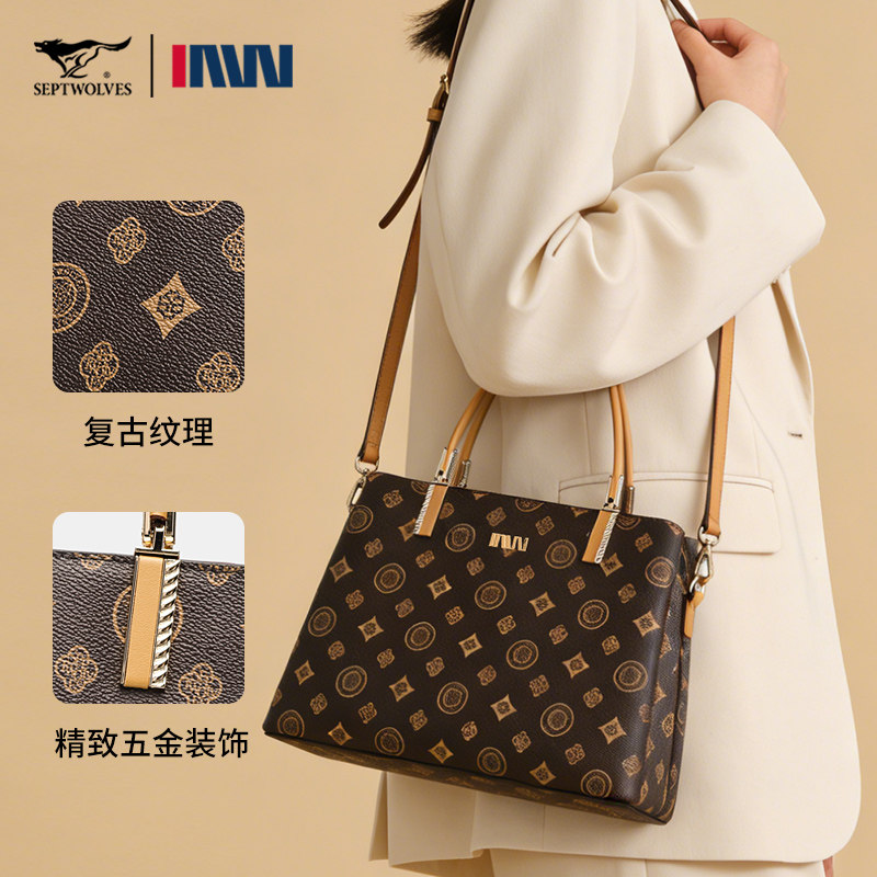 七匹狼轻奢高级印花托特包女包2026新款女式通勤大容量斜挎妈妈包