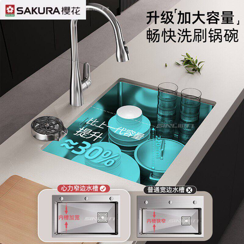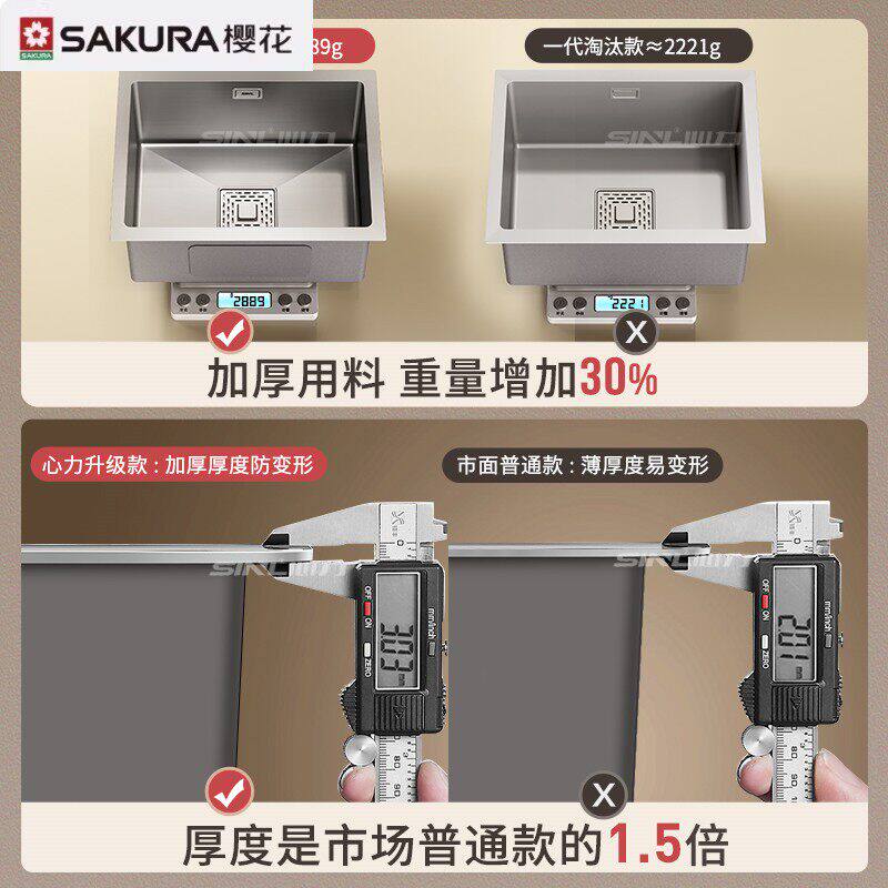 樱花304不锈钢水槽单槽小尺寸厨房吧台中岛台迷你小尺寸洗菜盆台
