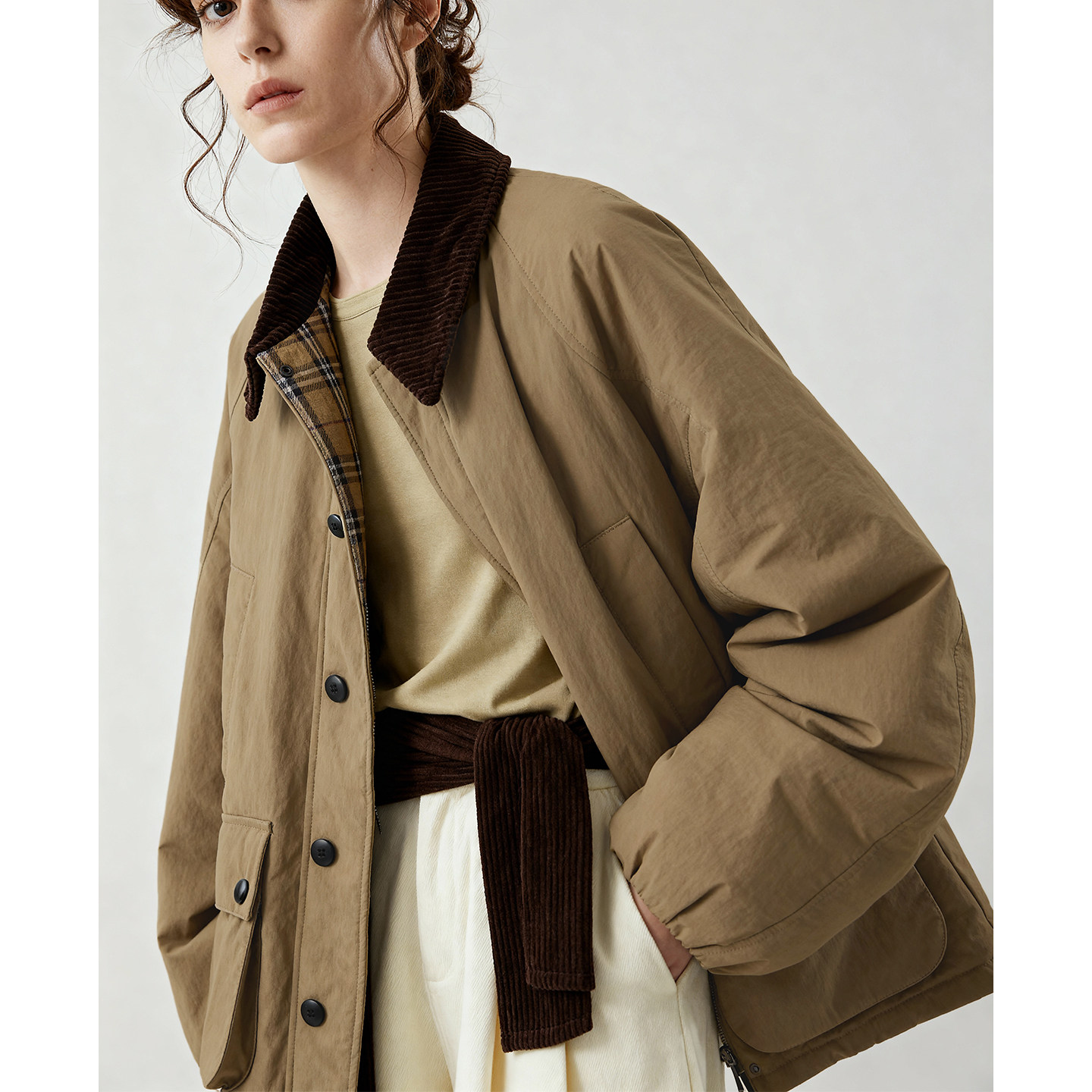 Basic House/百家好2026冬季翻领工装风棉服女士保暖百搭休闲外套