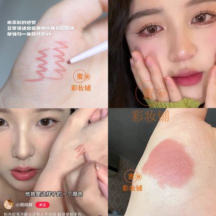 粉色下眼线开眼头画内眼角!楚楚可怜眼线笔05有聊小姐豆沙粉棕色
