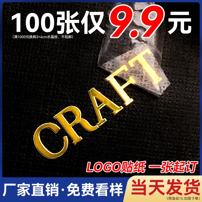 水晶标贴烫金贴纸定制金属标签定制转印贴纸logo贴纸透明品牌广告商标二维码订做打印烫金定做防水不干胶印刷