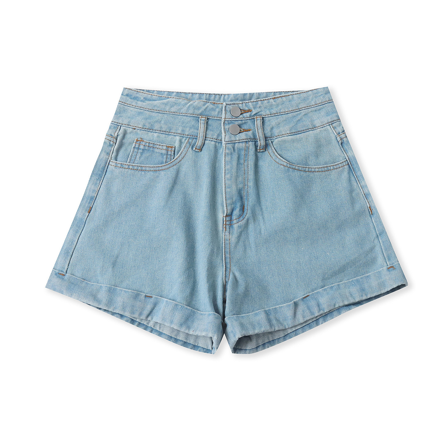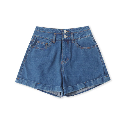 牛仔棉阔腿短裤 夏季新款外贸女装时尚青春高腰拉链纽扣短裤33216