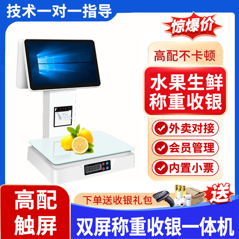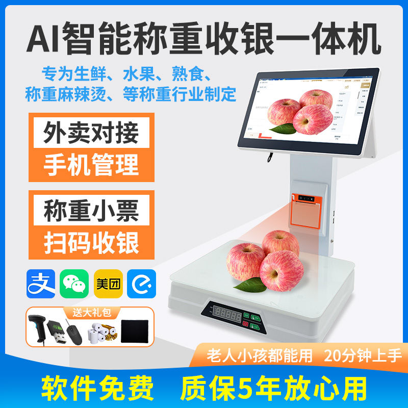AI称重收银机一体机双屏触摸屏生鲜超市零售熟食麻辣烫扫码电子秤