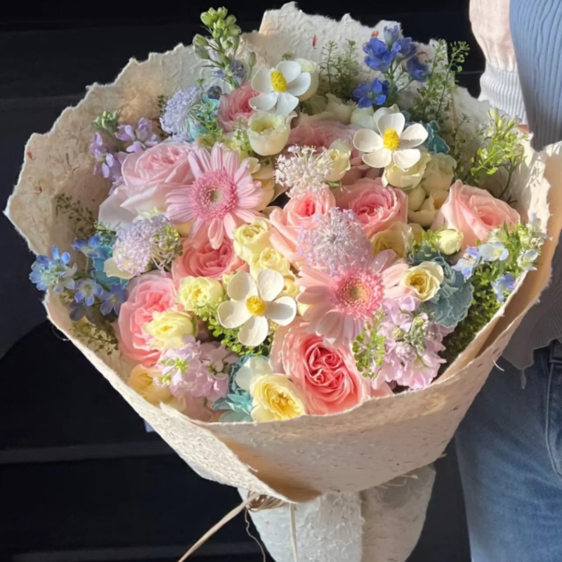苏州鲜花速递同城送花上门粉红玫瑰花束混搭向日葵花束生日鲜花店