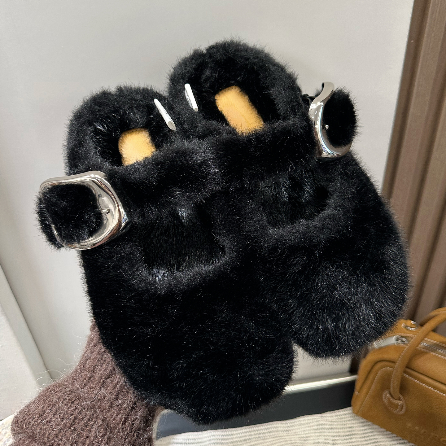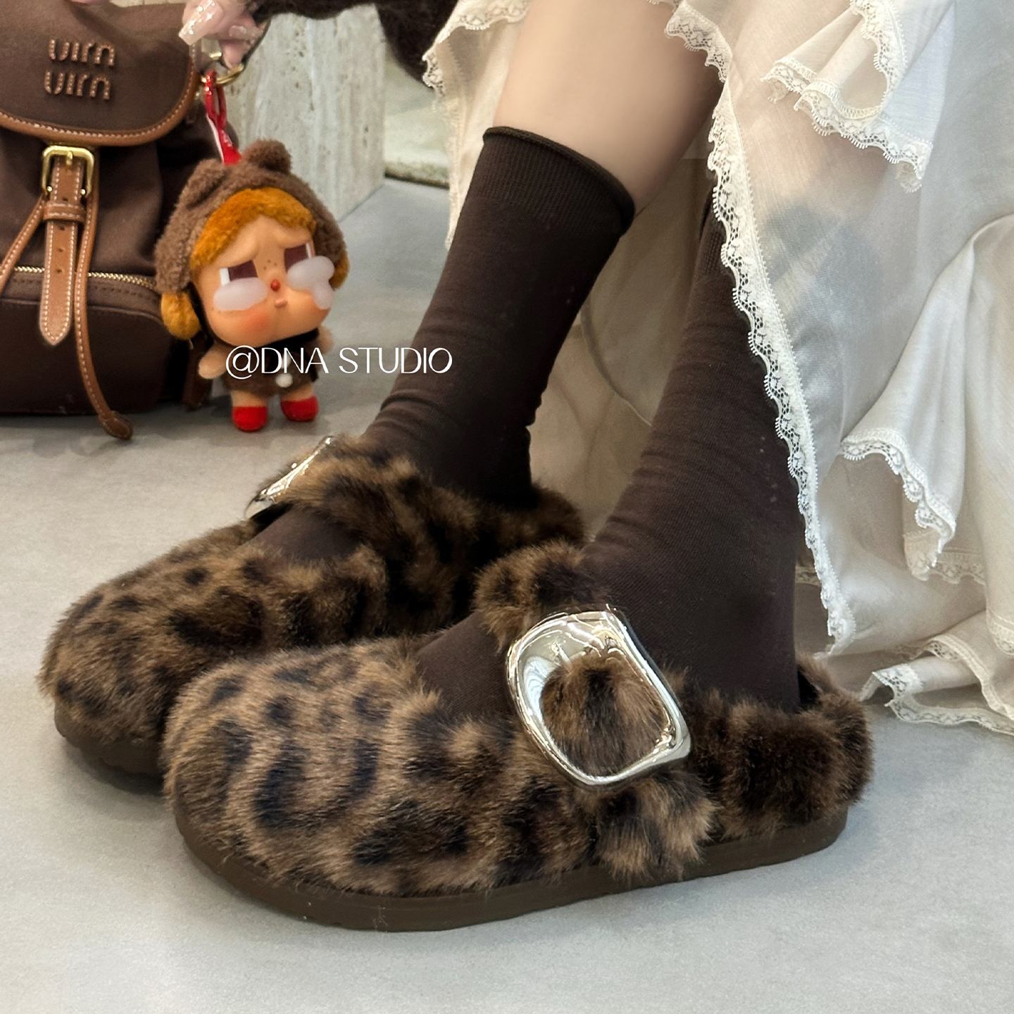 复古豹纹毛毛包头拖鞋女2025新款百搭休闲鞋女鞋平底单鞋女鞋拖鞋