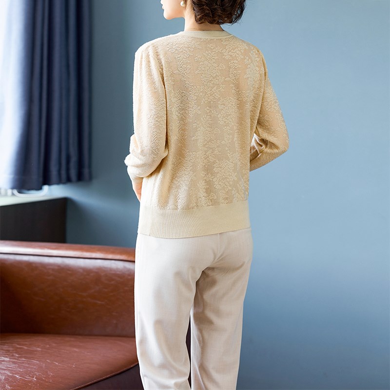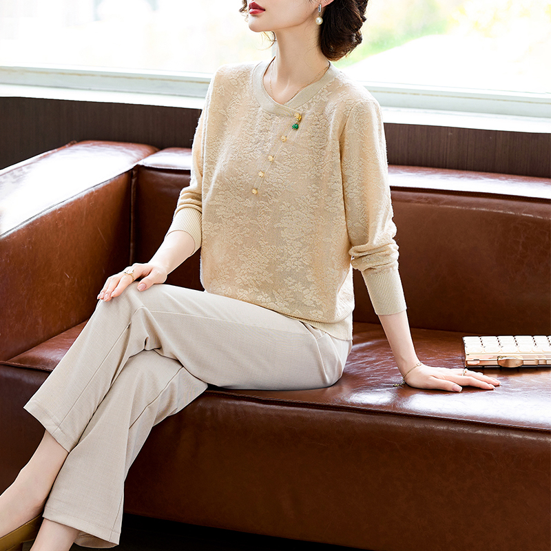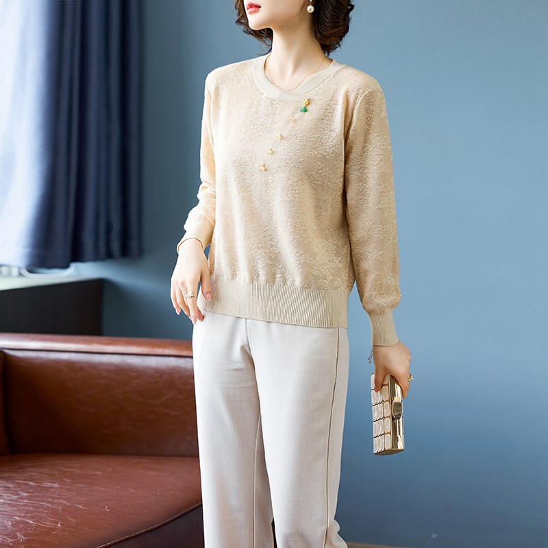 妈妈装2024新款纱袖T恤洋气中老年女装针织上衣春秋打底雪纺小衫