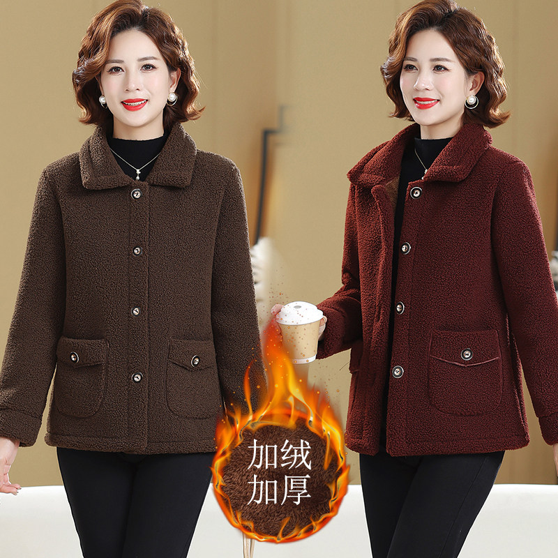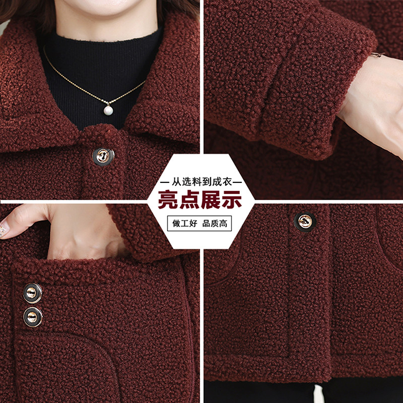 新款加绒加厚双扣羊羔毛妈妈装短款外套保暖外套女上衣中老年秋冬