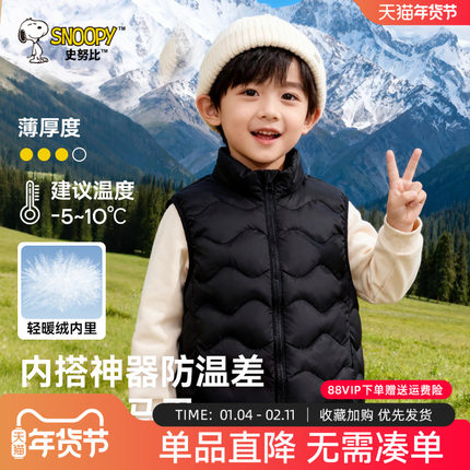 史努比儿童马甲外穿男童冬季保暖坎肩冬装马夹男大童黑色羽绒背心