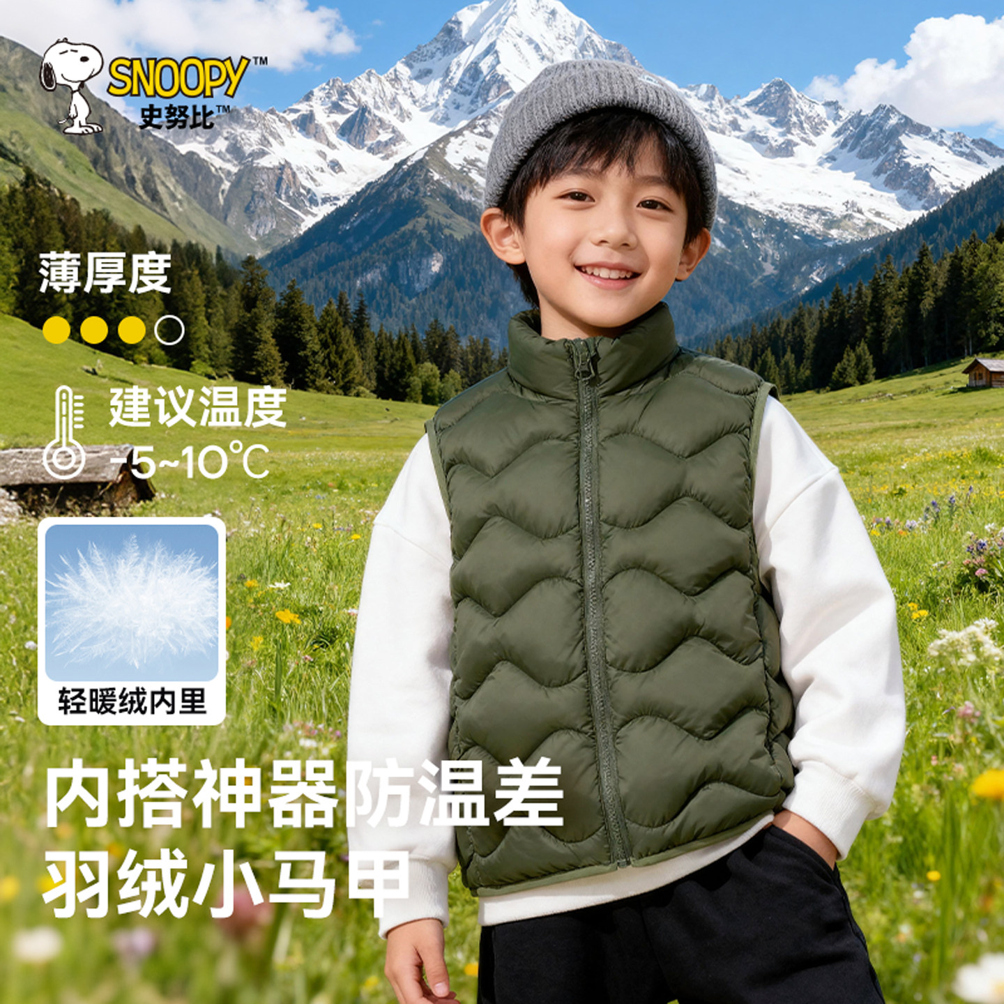 史努比男童羽绒马甲2026新款