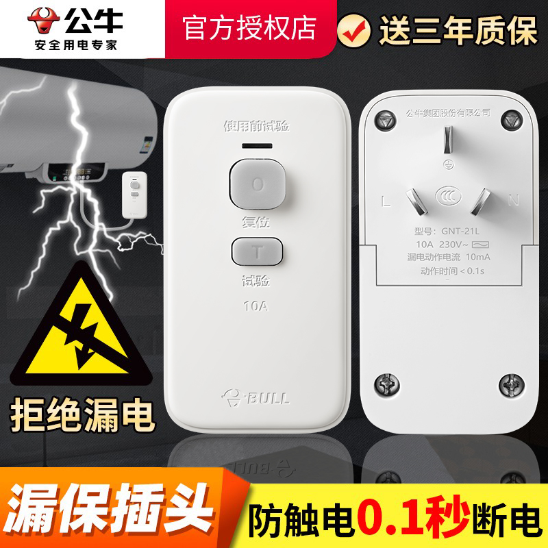 公牛防漏电保护器插头电热水器16a空调漏保带开关家用10a漏电插座