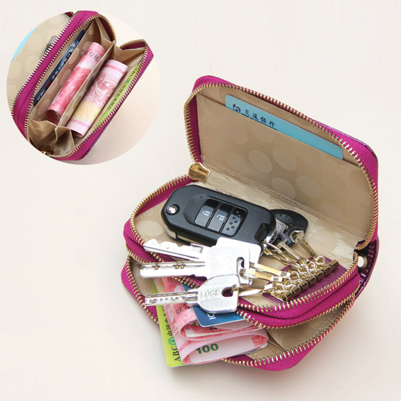 钥匙包女士真皮短款双拉链零钱包多功能大容量新款牛皮小手包手拎