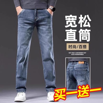 Yishion以纯男装正品官店秋季男士牛仔裤秋冬宽松直筒弹力大码长