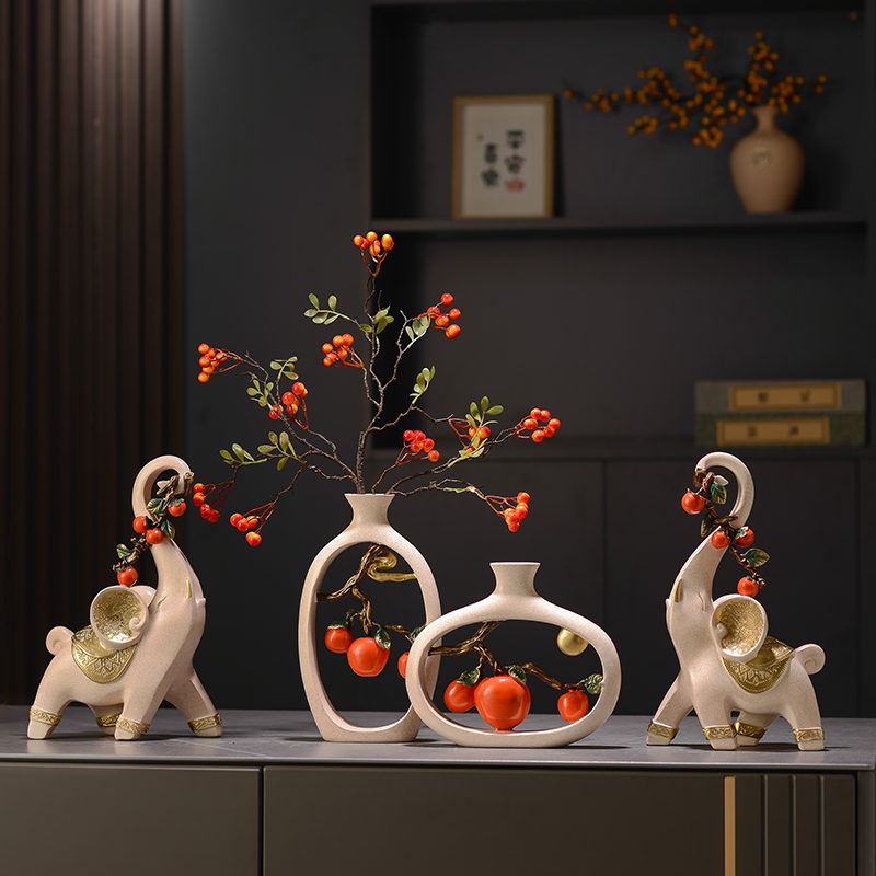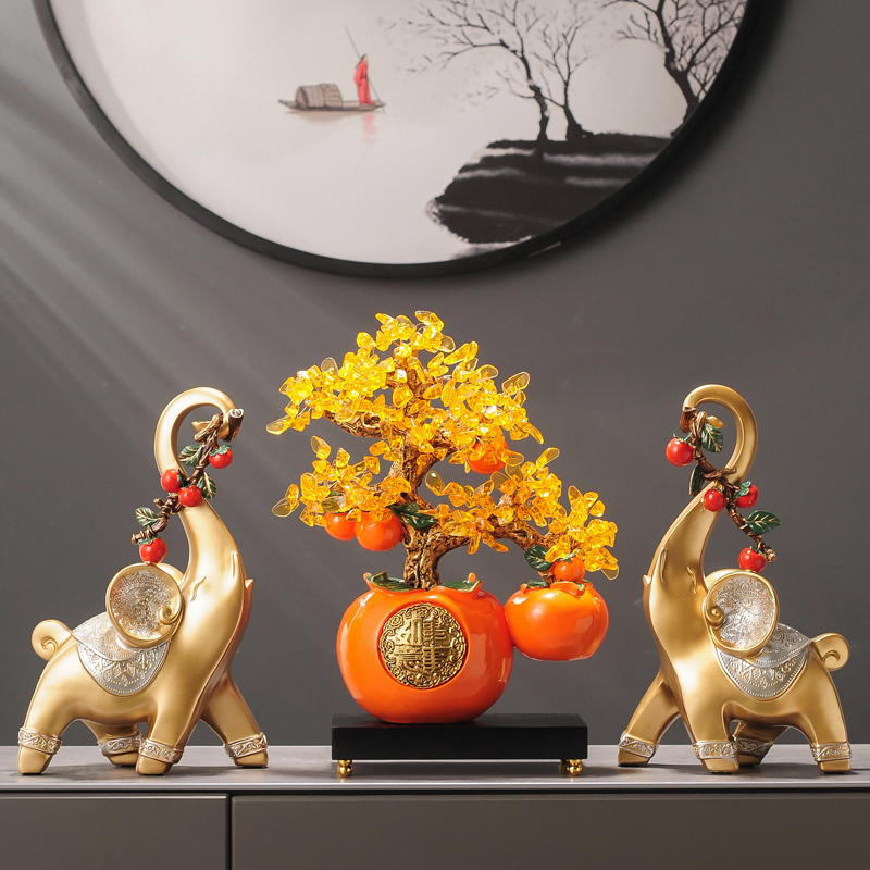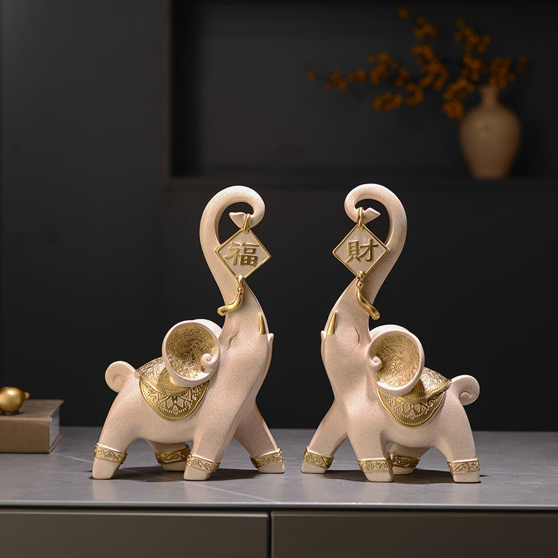事事如意招财大象一对玄关电视柜办公室轻奢高档摆件乔迁新居礼品