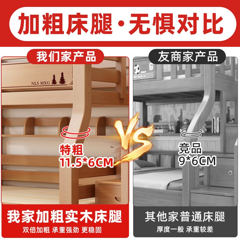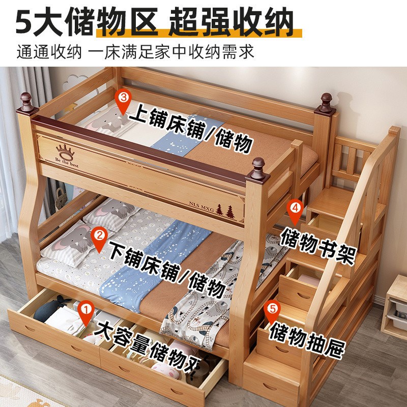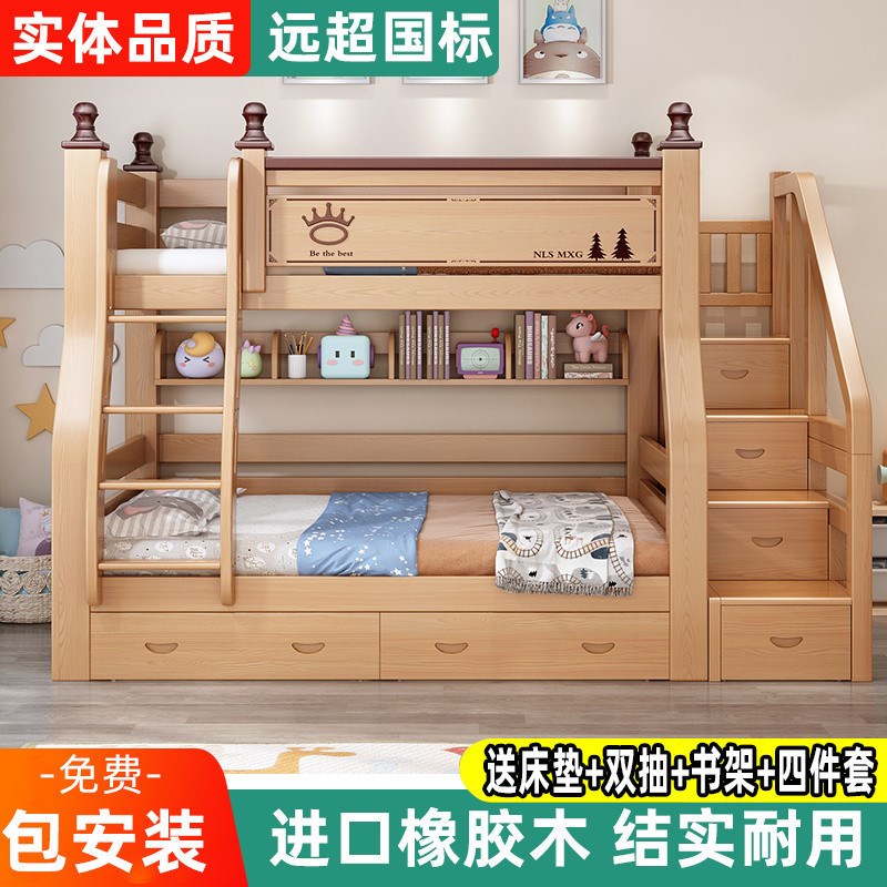 上下铺橡胶木加厚实木儿童床上下床多功能高低两层双层床双人儿童