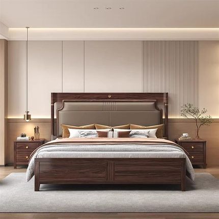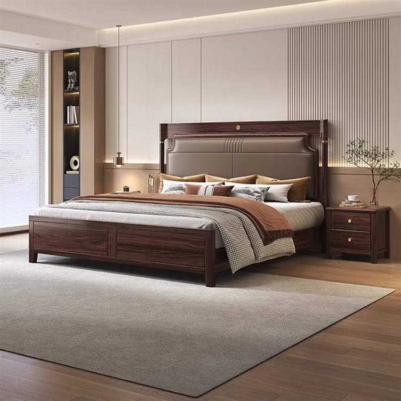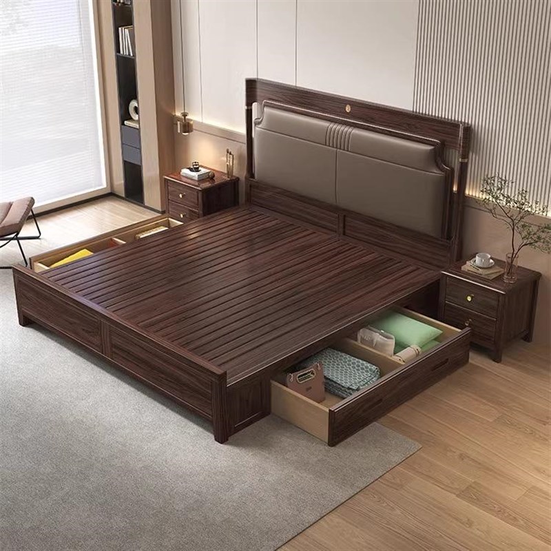 新中式乌金木全实木床现代简约轻奢主卧储物高箱家用1.8米双人床