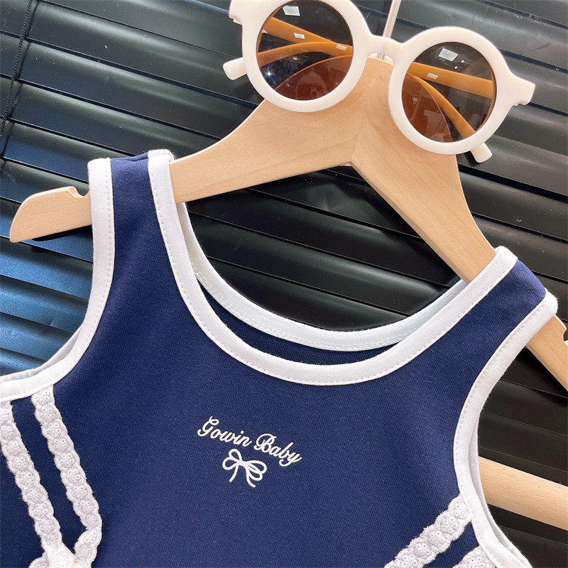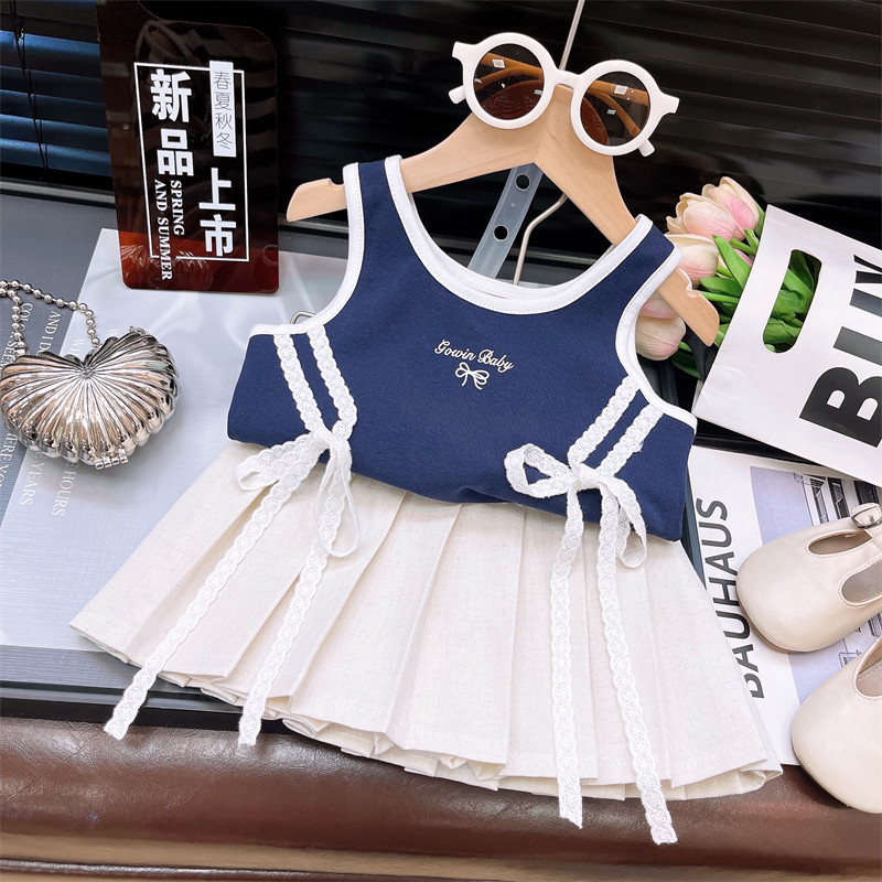 韩韩良品女童时髦套装夏季2025新款女宝宝蝴蝶结背心百褶裙两件套