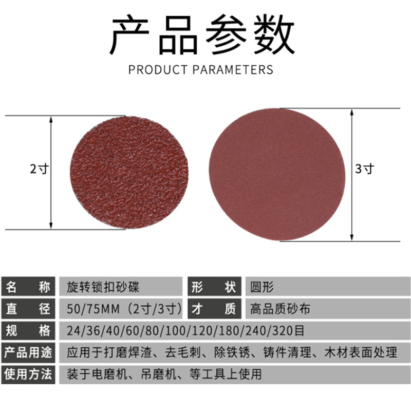1寸2寸3寸转锁砂碟纽扣旋转砂布圆形砂纸打磨抛光片锁扣转聚磨光