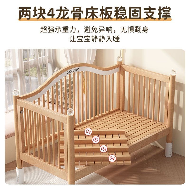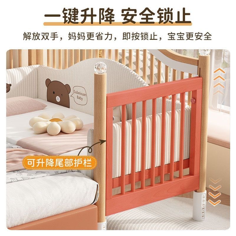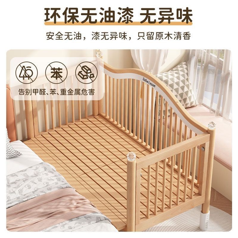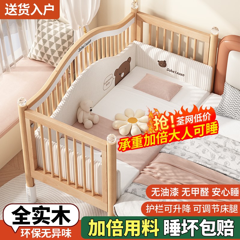 实木儿童拼接床婴儿床拼接大床可升降护栏加宽床边床宝宝单人小床