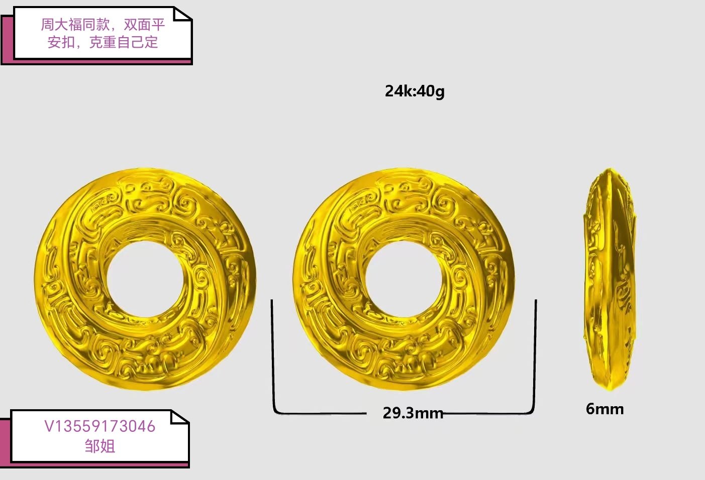 定制周大福同款传承龙纹平安扣吊坠 龙环一生石膏模具