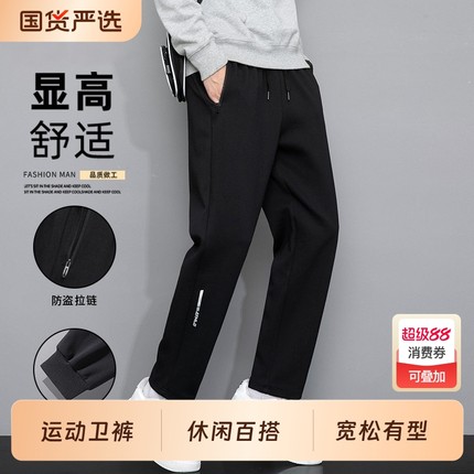 裤子男士2025新款春秋季运动卫裤加肥加大码秋冬直筒加绒束脚长裤