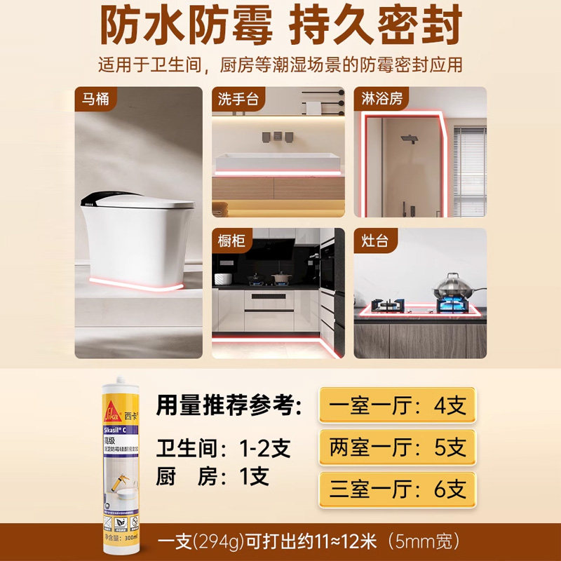 西卡玻璃胶防水防霉厨卫马桶门窗密封胶灶台缝隙同色膏收缝剂透明