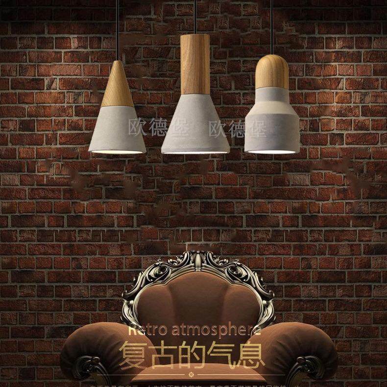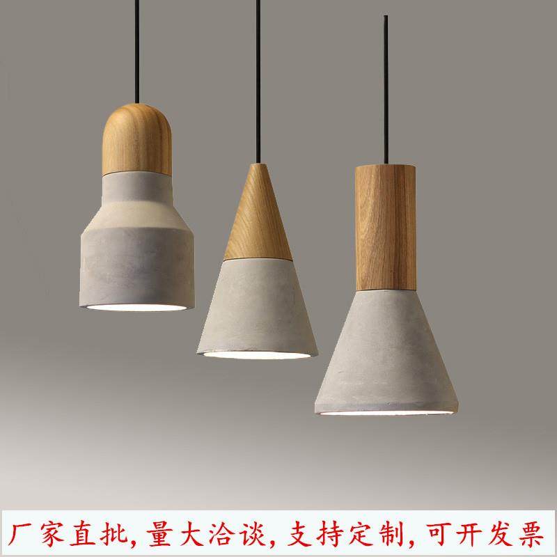 loft工业风橡木水泥吊灯北欧客厅餐厅吧台网咖服装店木头小吊灯