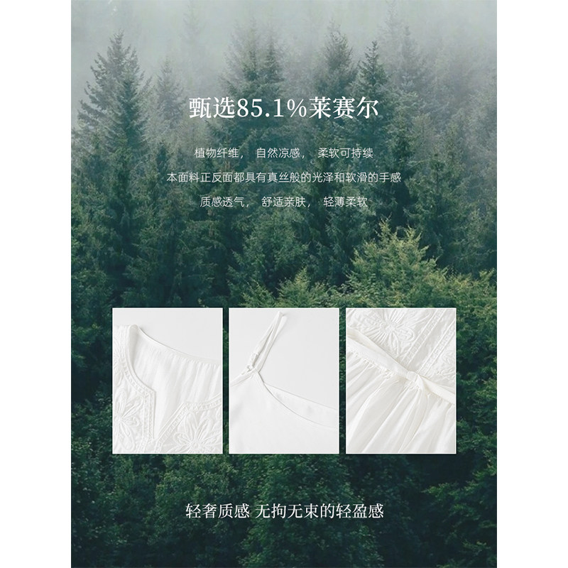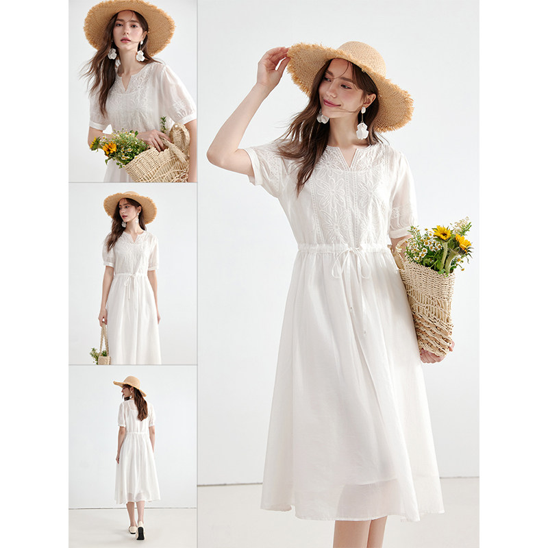 摩登浪漫连衣裙白色绣花欧若假日风裙子KBNE夏季新款法式V领长裙