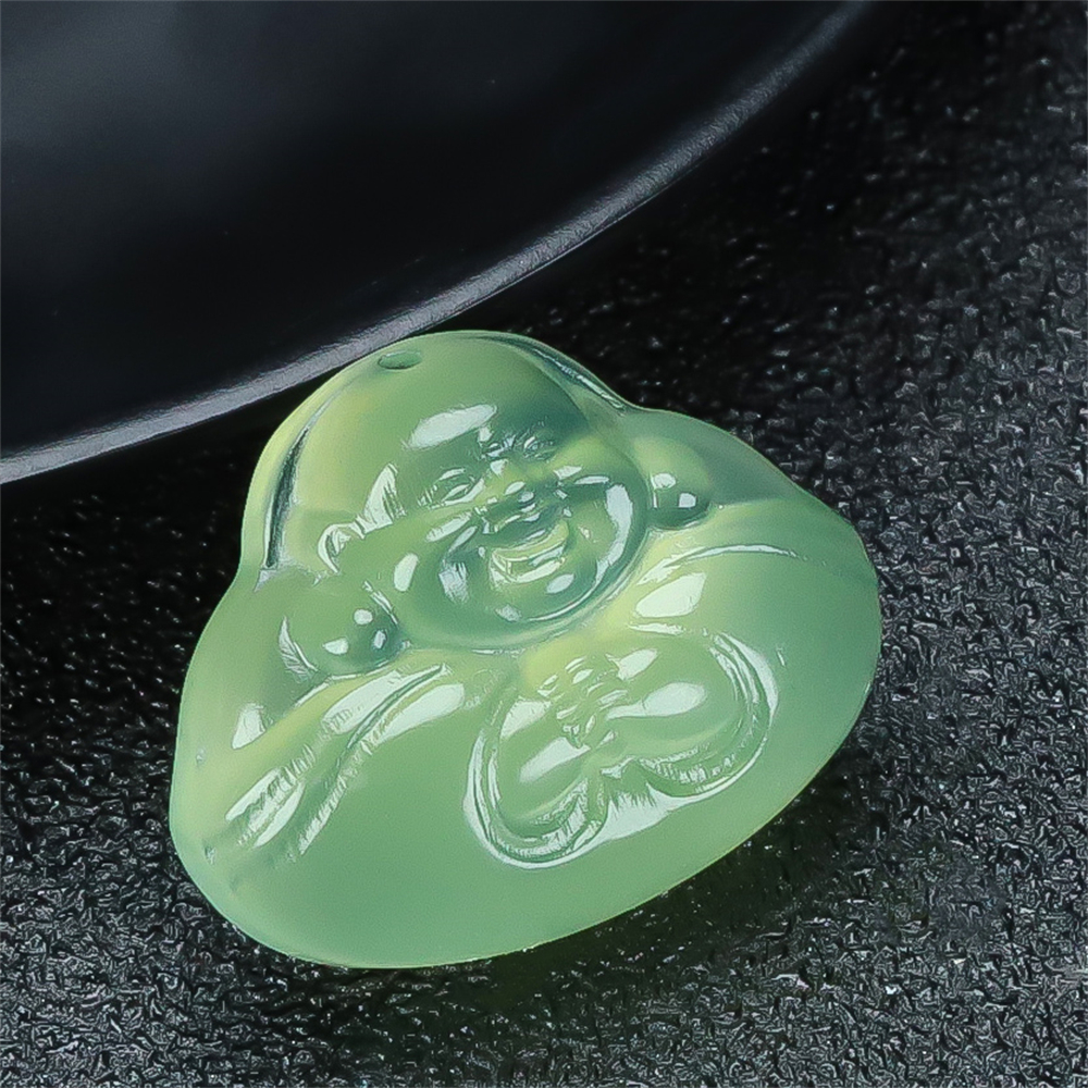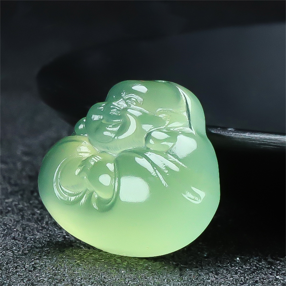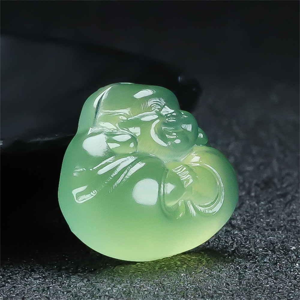 送证书天然高冰种浅绿色湖水绿岫玉弥勒佛抱抱佛玉石吊坠佛公项链
