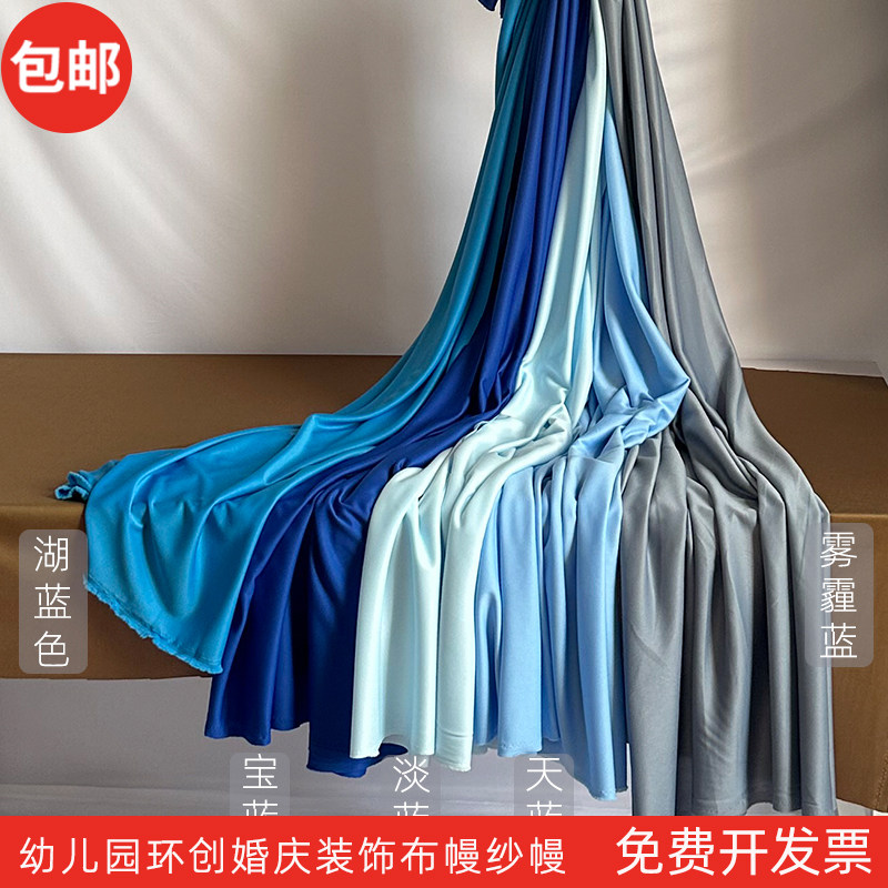 淡蓝色雾霾蓝色婚庆场景吊顶布幔背景布料幼儿园环创手工纱幔面料