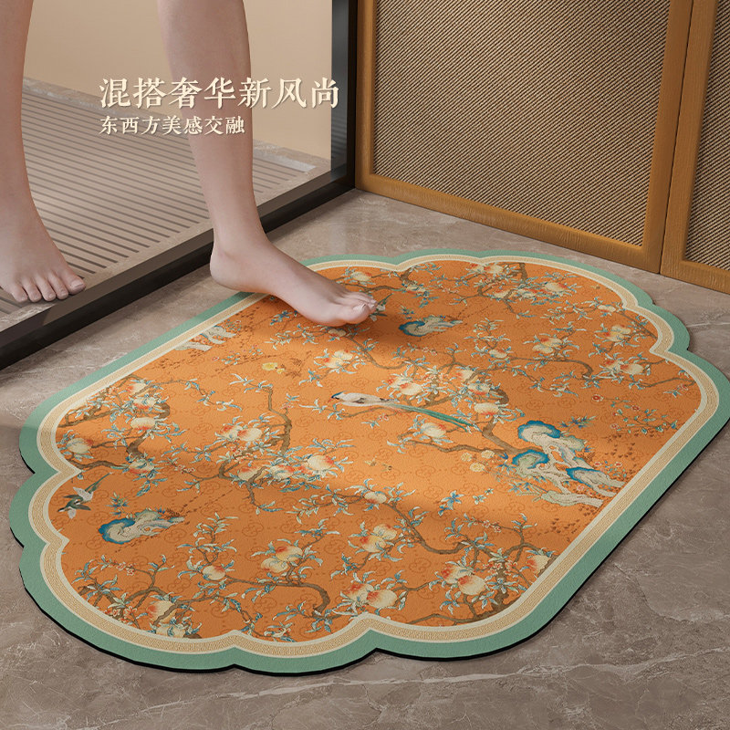 新中式浴室地垫卫生间吸水皮革防滑脚垫入户垫厕所门口进门垫桃锦
