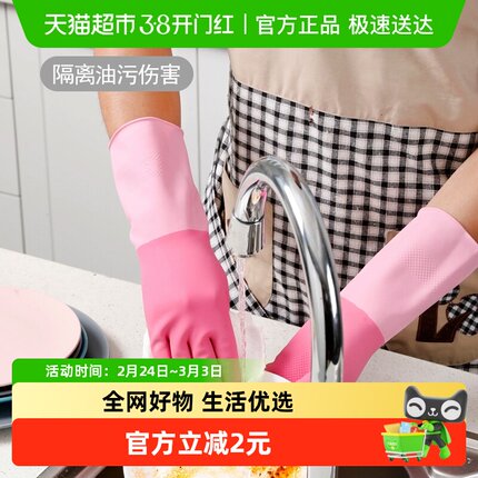 美丽雅强韧光里手套洗碗防水防油厨房家务清洁神器大号家用