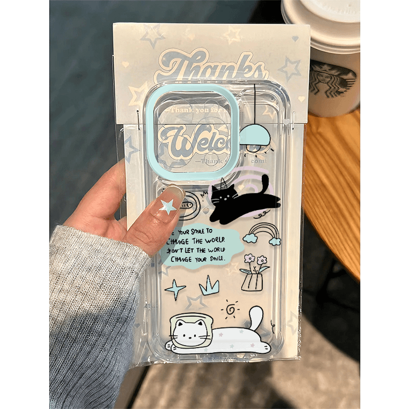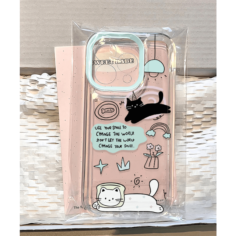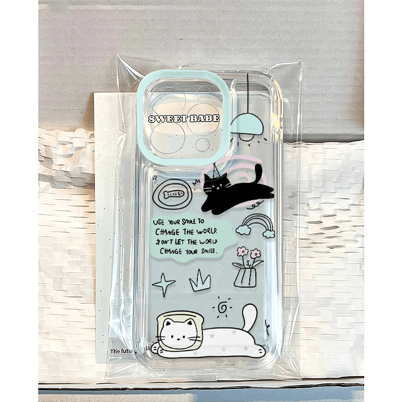 适用黑白猫苹果16E手机壳iPhone15promax透明14plus太空13mini可爱12卡通11新款8防摔7保护套xsmax男6s少女xr