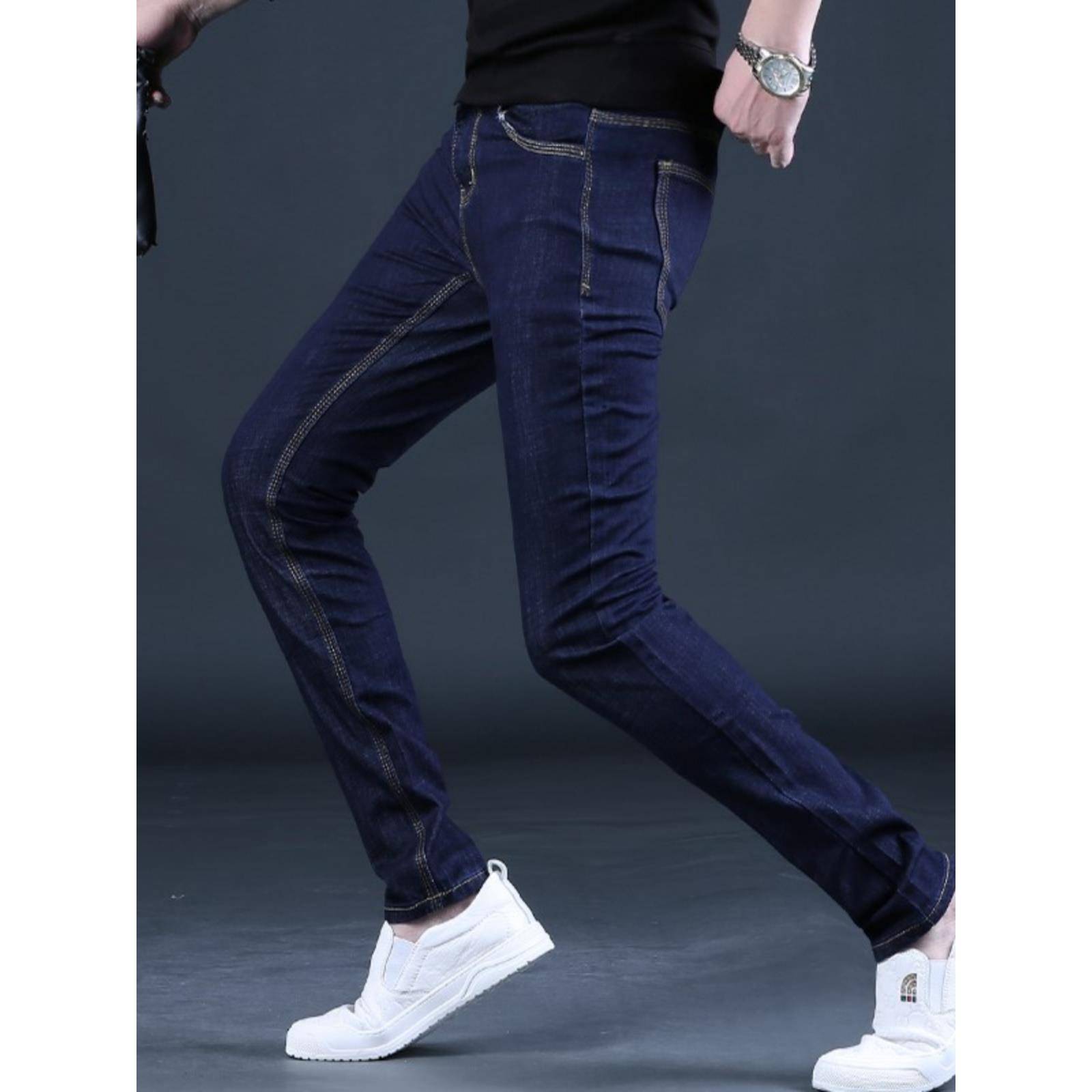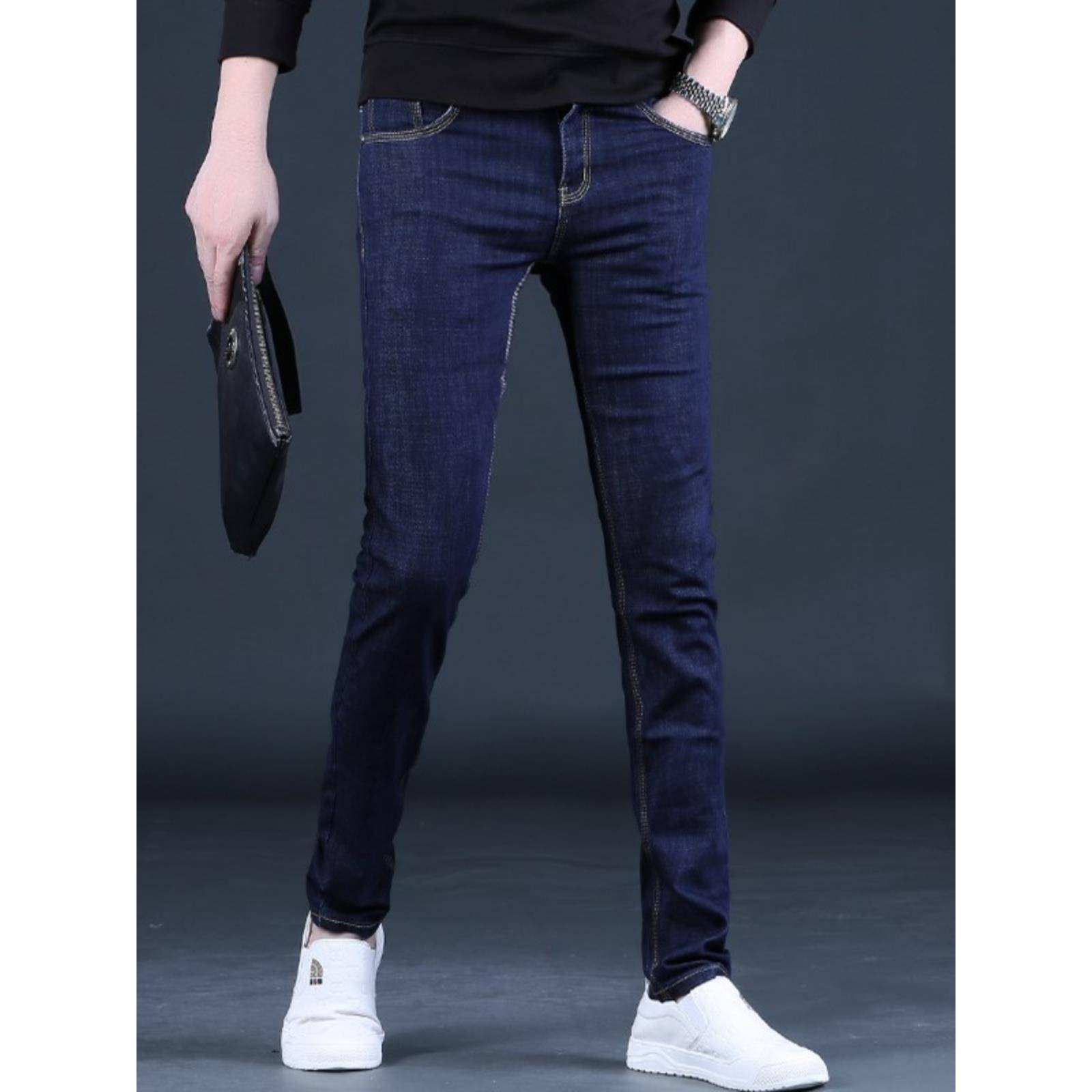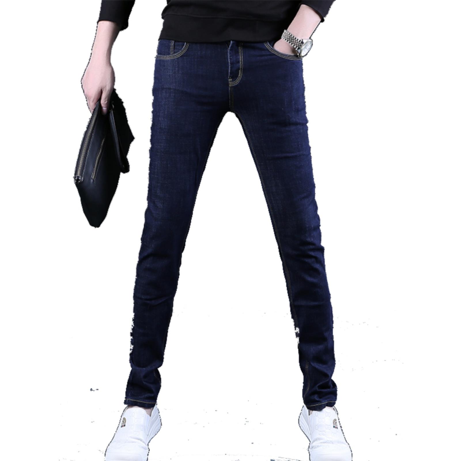 香港春夏季新款深蓝色牛仔裤男士潮流修身小脚弹力休闲长裤子男裤
