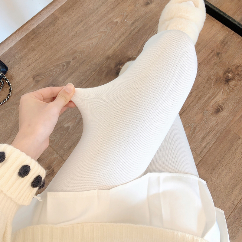 秋冬季加绒白色连裤袜女外穿加厚米白色保暖打底裤袜日系奶白丝袜