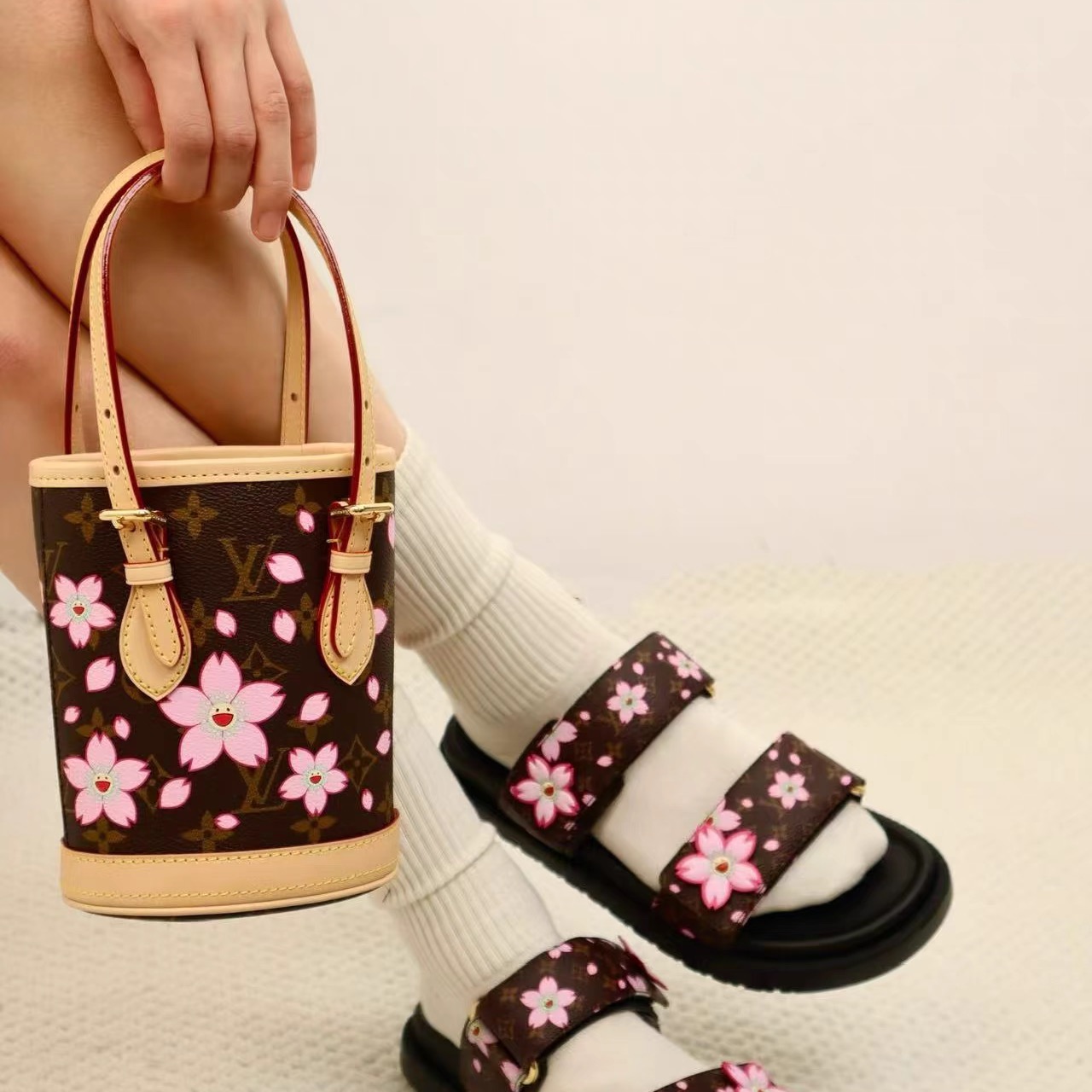 奢店 2025新款 LV/路易威登 村上隆樱花 NANO BUCKET 手袋 M13417