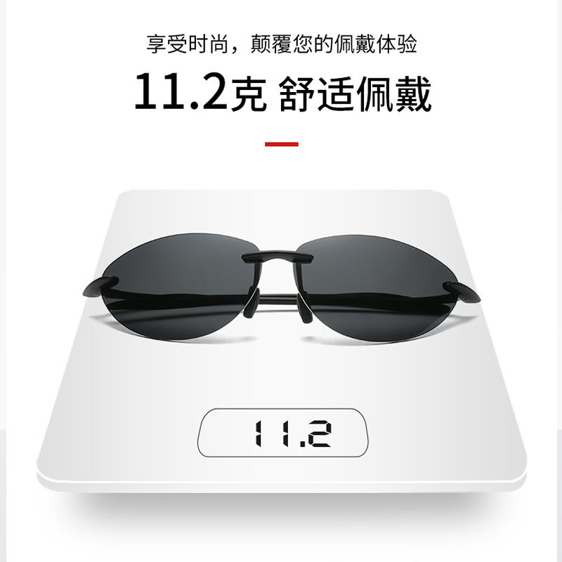 超轻偏光墨镜男款开车遮阳专用爸爸司机驾驶无框挡眩光偏振太阳镜