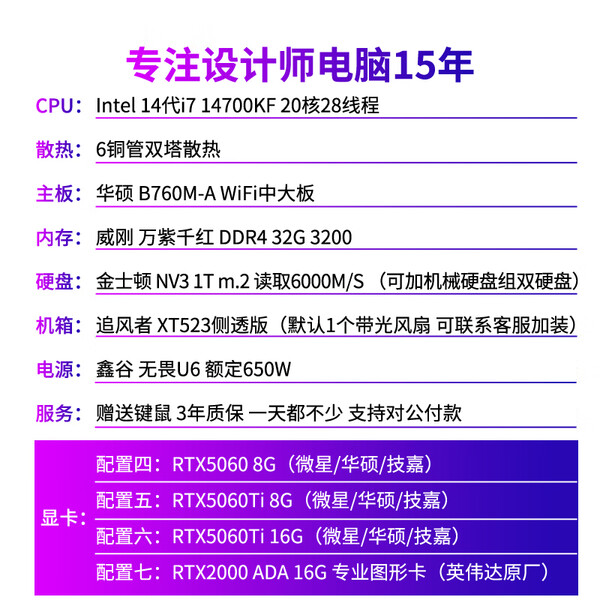 纵横卓创设计师图形工作站视频剪辑20核i7 14700KF/RTX5060Ti 16G/2000ADA建模渲染绘图组装台式电脑主机