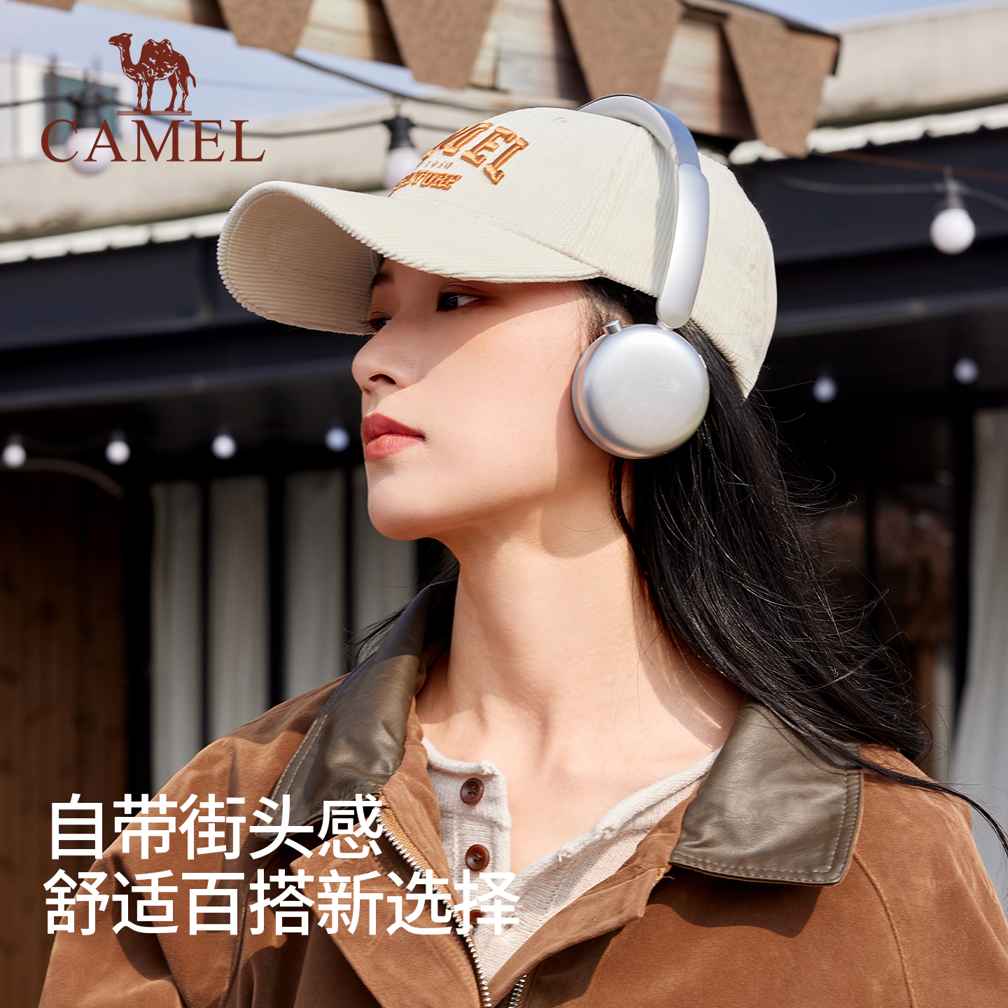 骆驼灯芯绒棒球帽2025年新款秋冬男宽帽檐显脸小潮酷美式鸭舌帽女